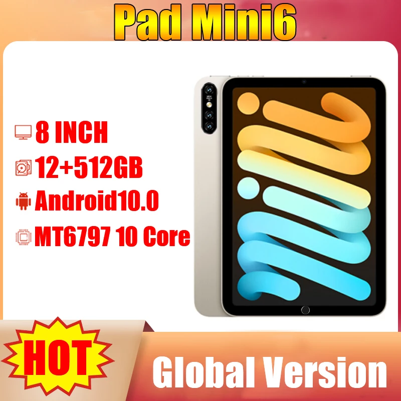 Планшет глобальная версия Pad MINI6, 10 ядер, 8 дюймов, 12 + 512 ГБ, Android 10,0
