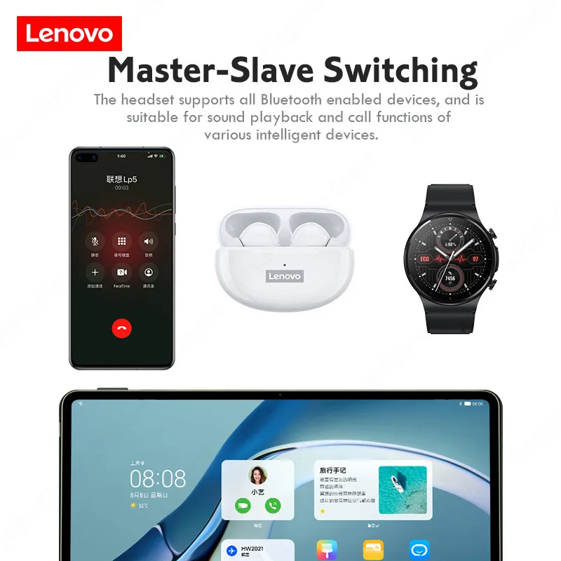Оригинальные наушники Lenovo LP5 Mini Bluetooth 9D стерео водонепроницаемые беспроводные bluetooth-наушники с микрофоном, гарнитура с шумоподавлением