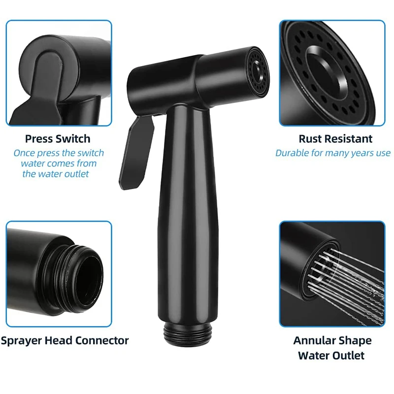 Биде черное для ванной комнаты, гигиенический душ с сильным давлением воды, распылитель для биде, дезактивация, сиденье для унитаза