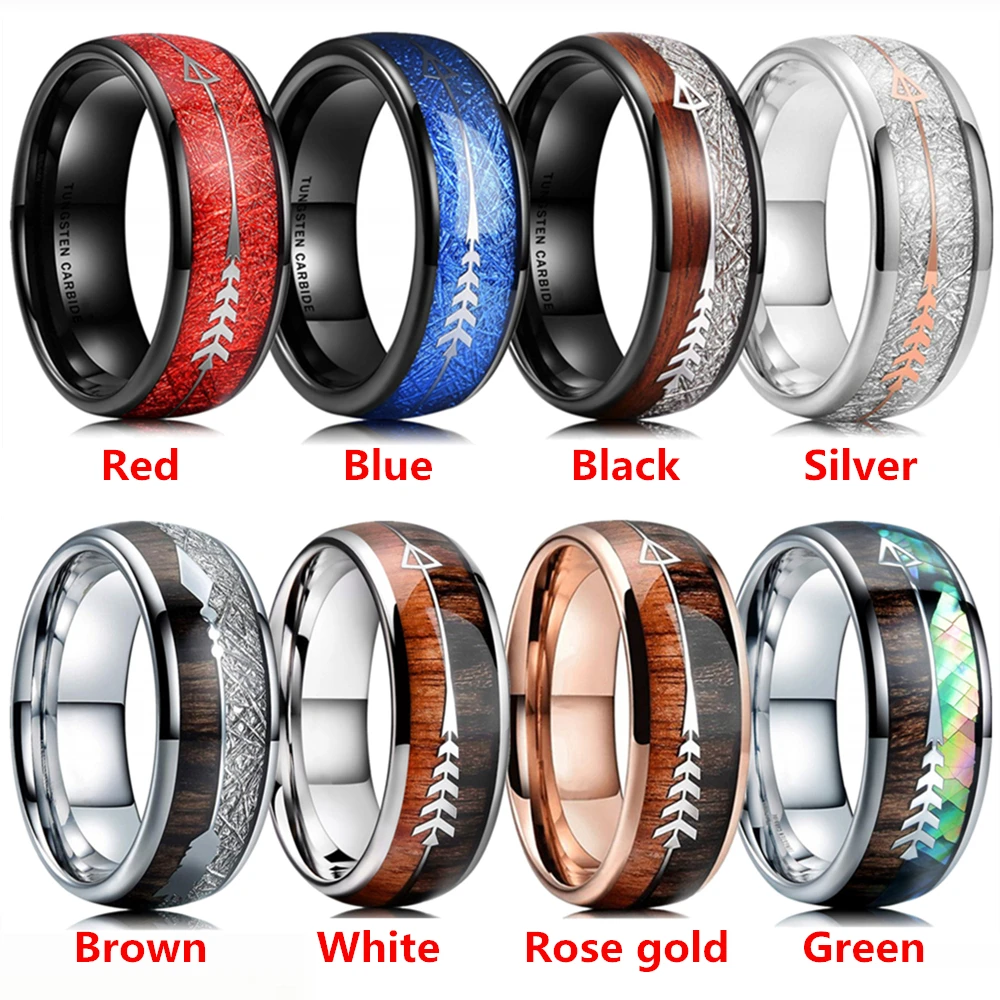 8 мм кольца из карбида вольфрама, нержавеющая сталь, инкрустация, гавайская КоА, дерево, метеорит, стрелка, обручальное кольцо, мужские ювелирные изделия