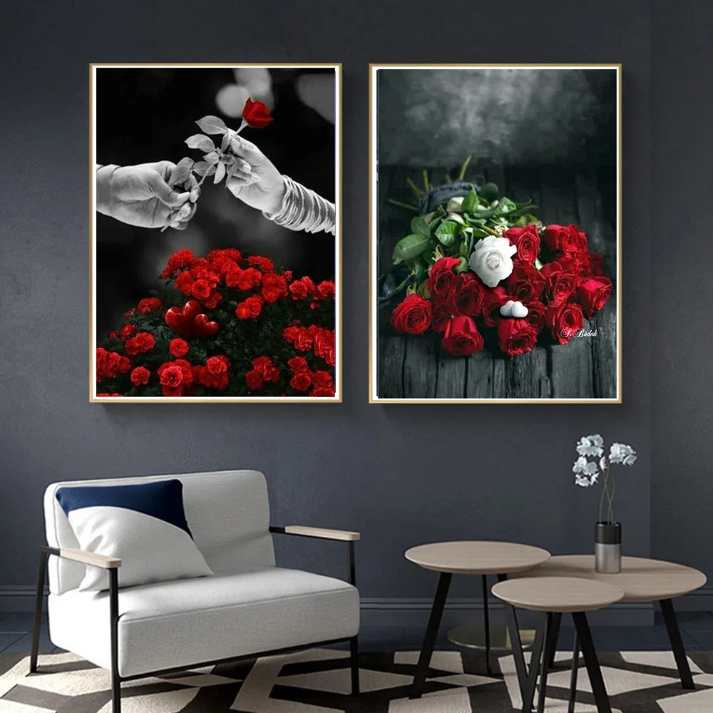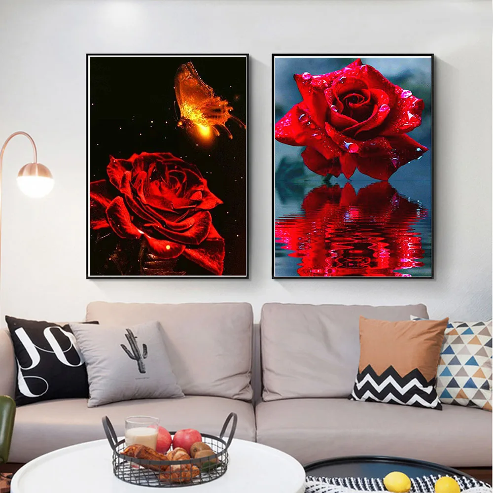 Полностью квадратная/круглая 5D алмазная картина цветы Роза мозаичная картина из стразов Алмазная Вышивка Роза вышивка крестом домашний декор
