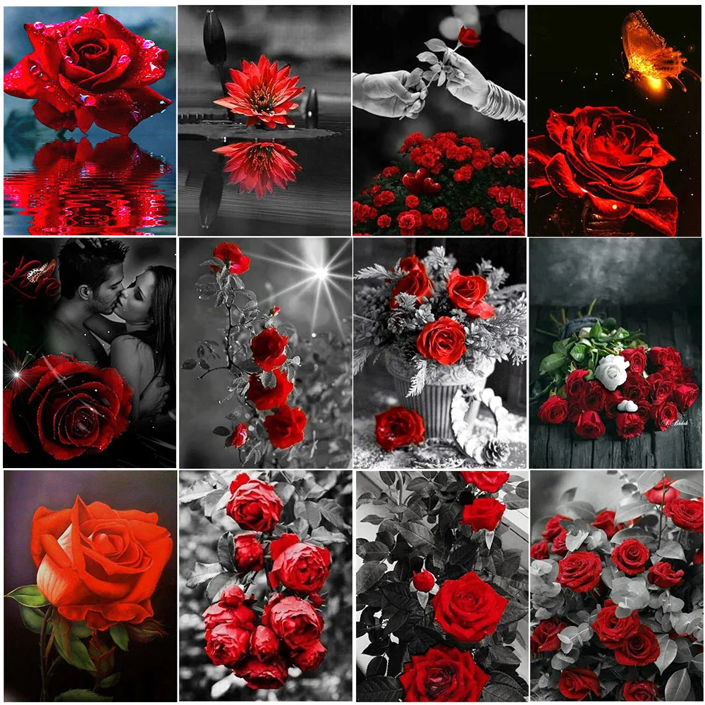 Алмазная живопись, роза, цветок, алмазная вышивка, мозаика стразы, ...