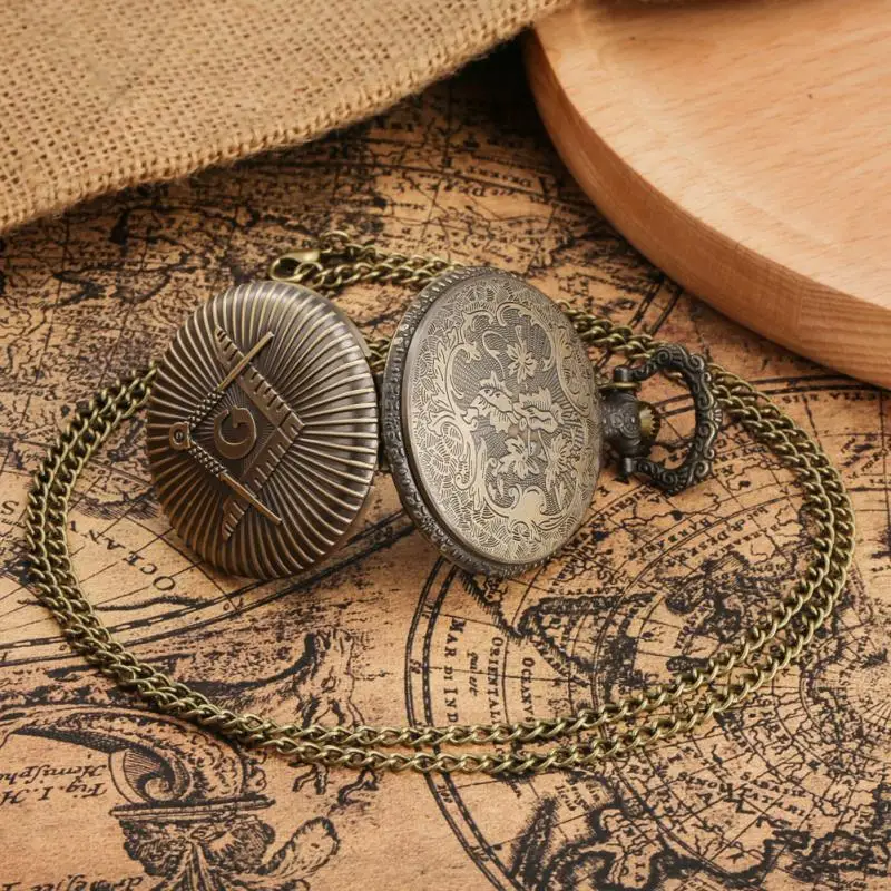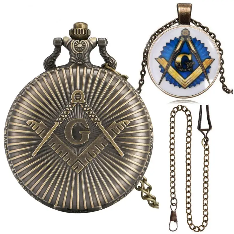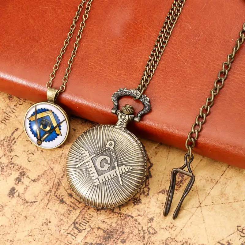 Masonic Freemasonry хромированный угольник и циркуль Mason, мужские карманные часы, женское ожерелье, кулон, часы, подарочный набор, коробка для мужчин и женщин