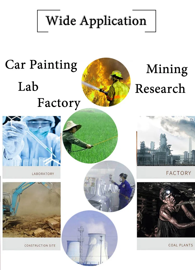 Используется для окраски, распыления пестицидов, химической промышленности, фабрики, горнодобывающей промышленности, лаборатории, установки дома, ежедневной дымки
