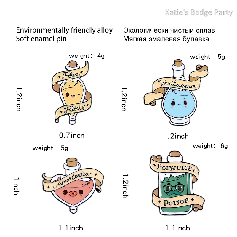 Брошь на булавке GDHY, с эмалью, волшебные Зелия, полисоковое зелье...