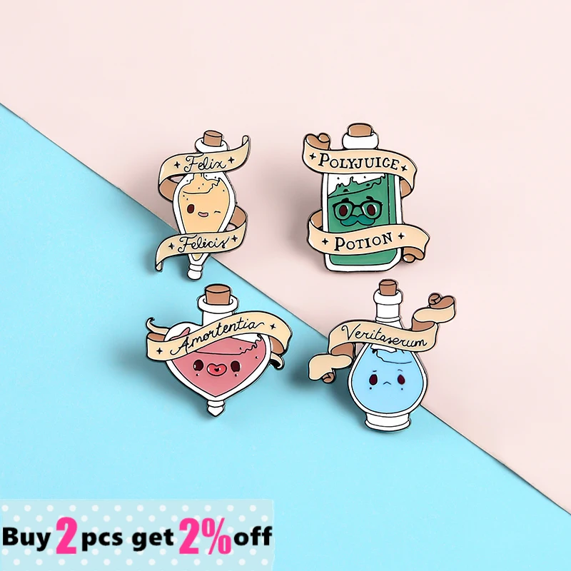 Изготовленные на заказ эмалированные булавки Magic Potion Love трансформирует волшебную бутылку на удачу булавки для лацканов Броши Кино ювелирные изделия подарки для друзей оптовая продажа