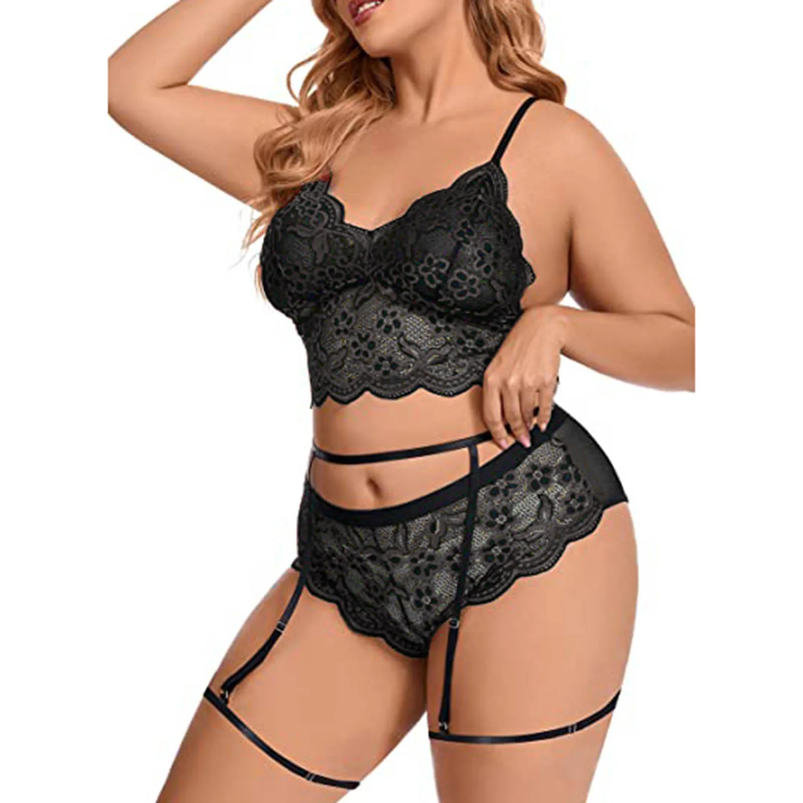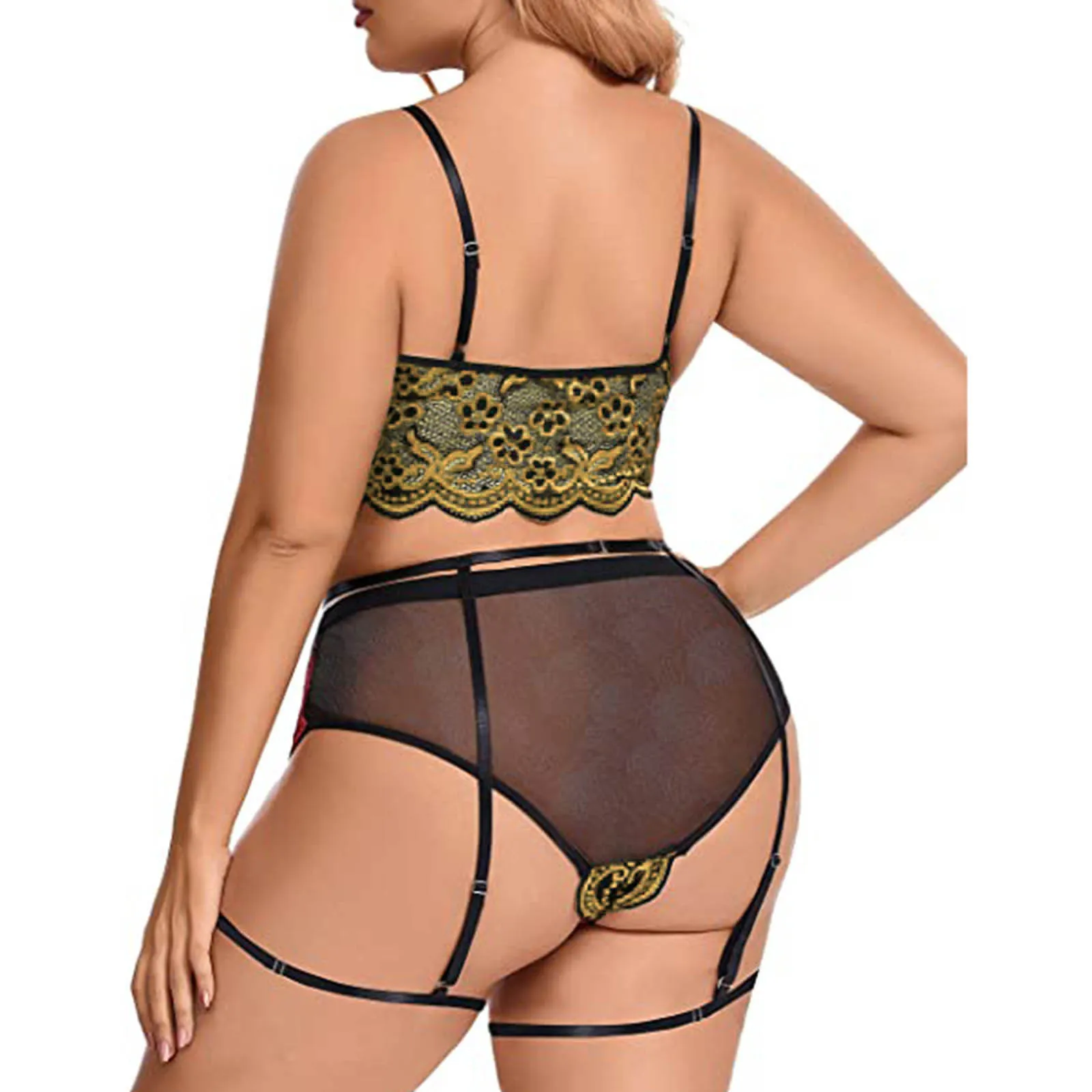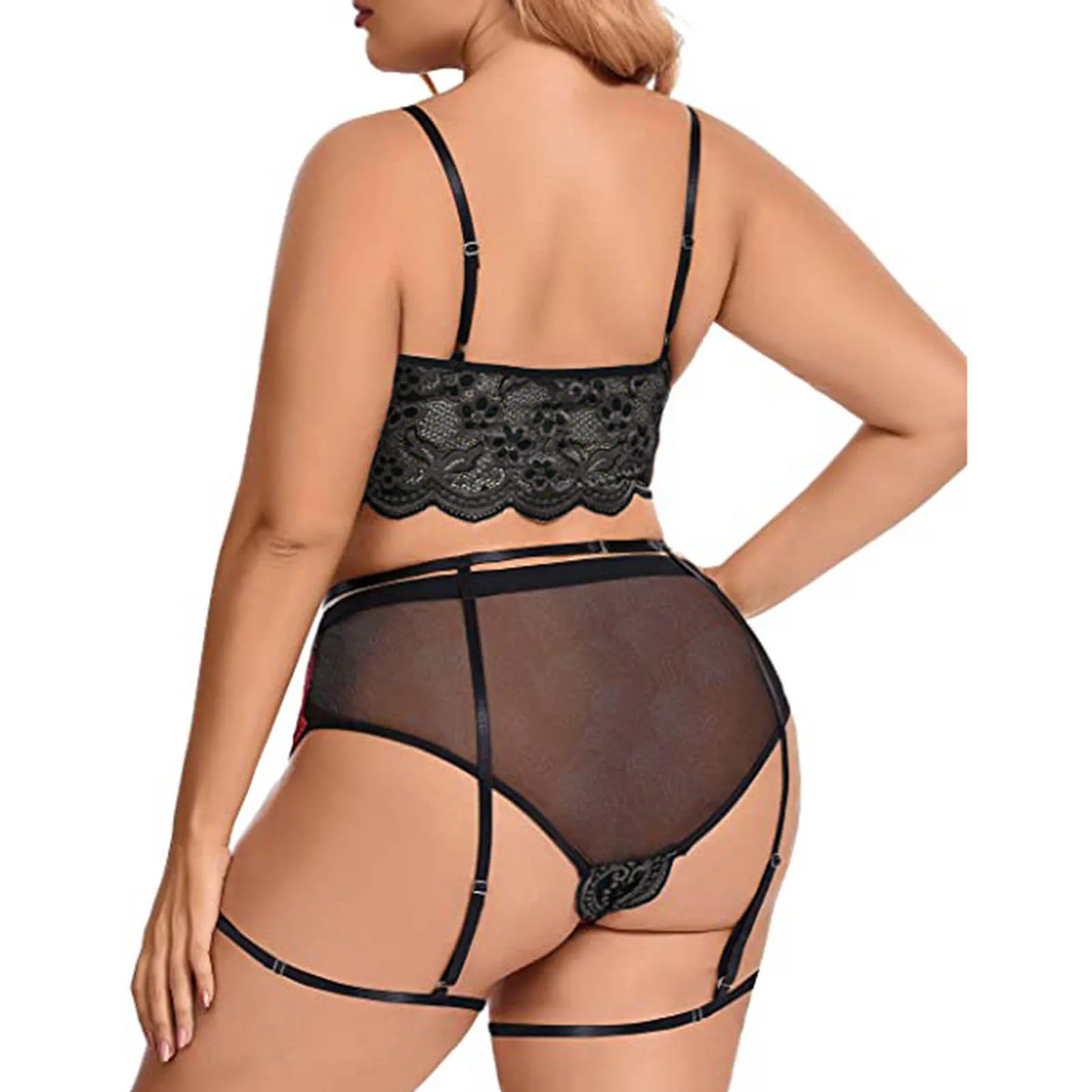 Женский сексуальный комплект нижнего белья размера плюс, кружевной бюстгальтер с вышивкой и стринги, комплект нижнего белья, прозрачное Сетчатое цветочное эротическое белье, сексуальное 4XL