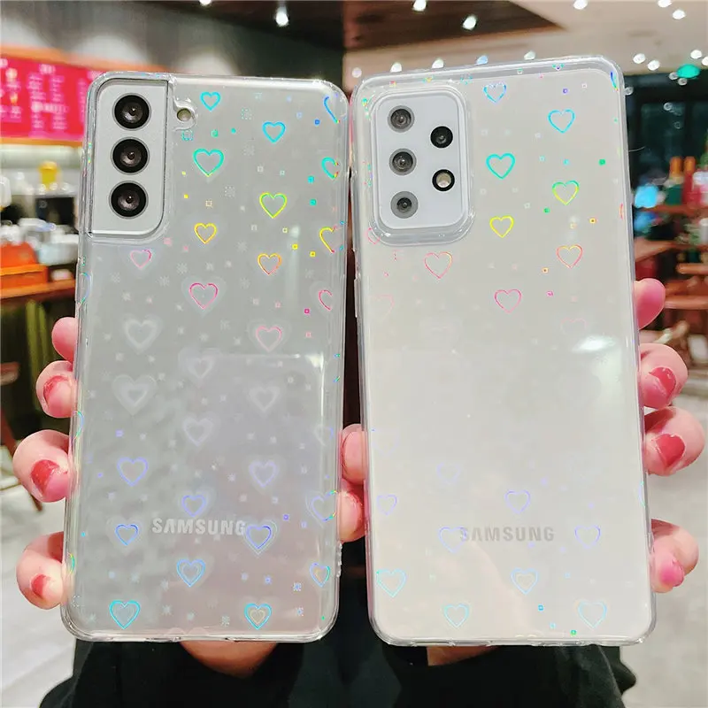 Модный прозрачный чехол с градиентным лазером и сердечками для Sams...