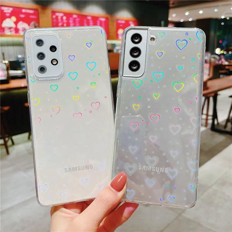 Чехол для Samsung Galaxy S21, лазерный чехол с сердечками для Samsu...