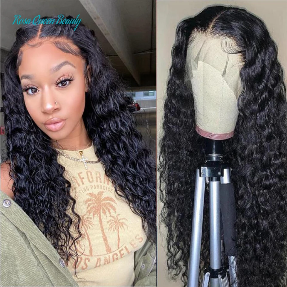 Парики из человеческих волос для черных женщин, бразильские вьющиеся волосы, 30 дюймов, влажные и волнистые, свободные, глубокая волна, фронтальный парик
