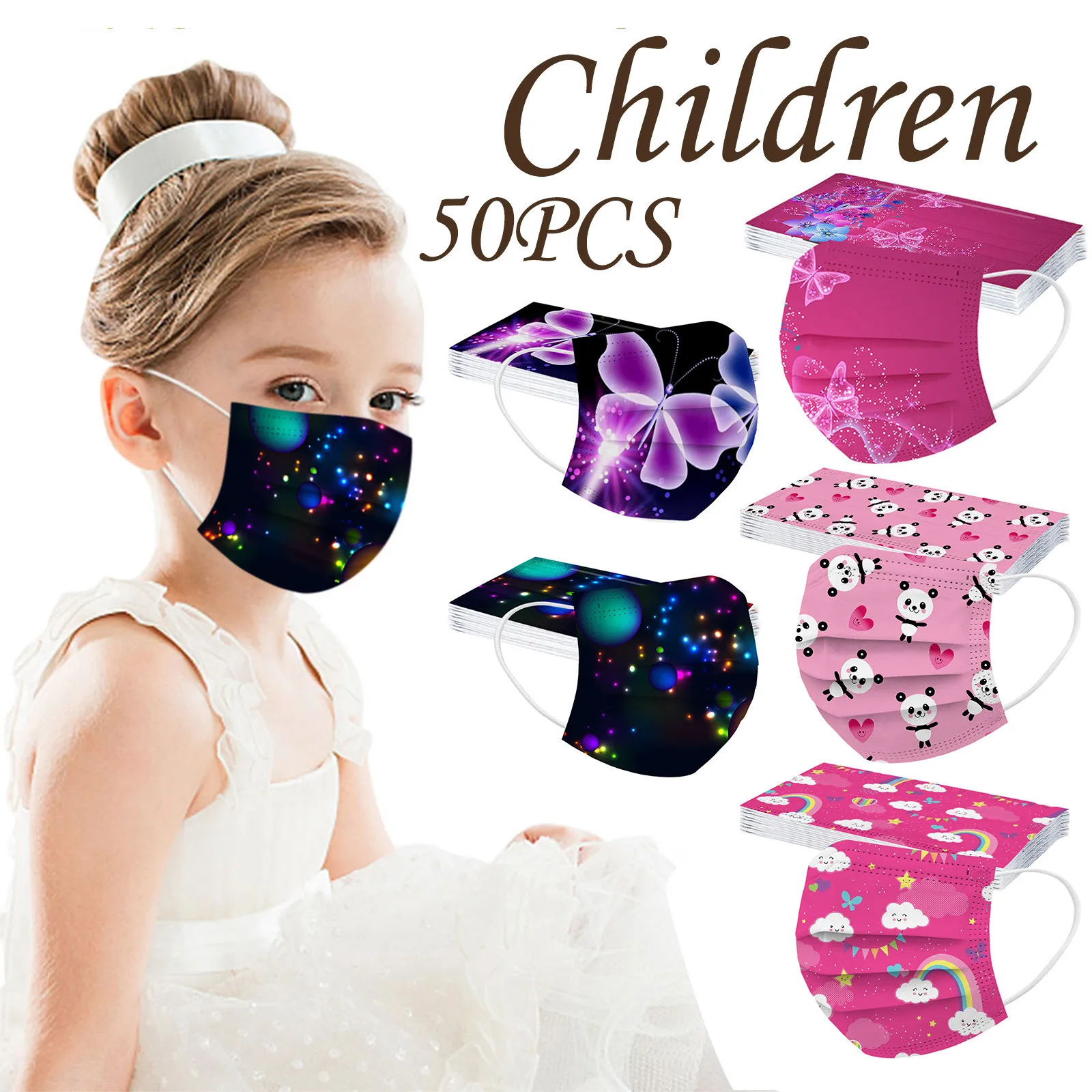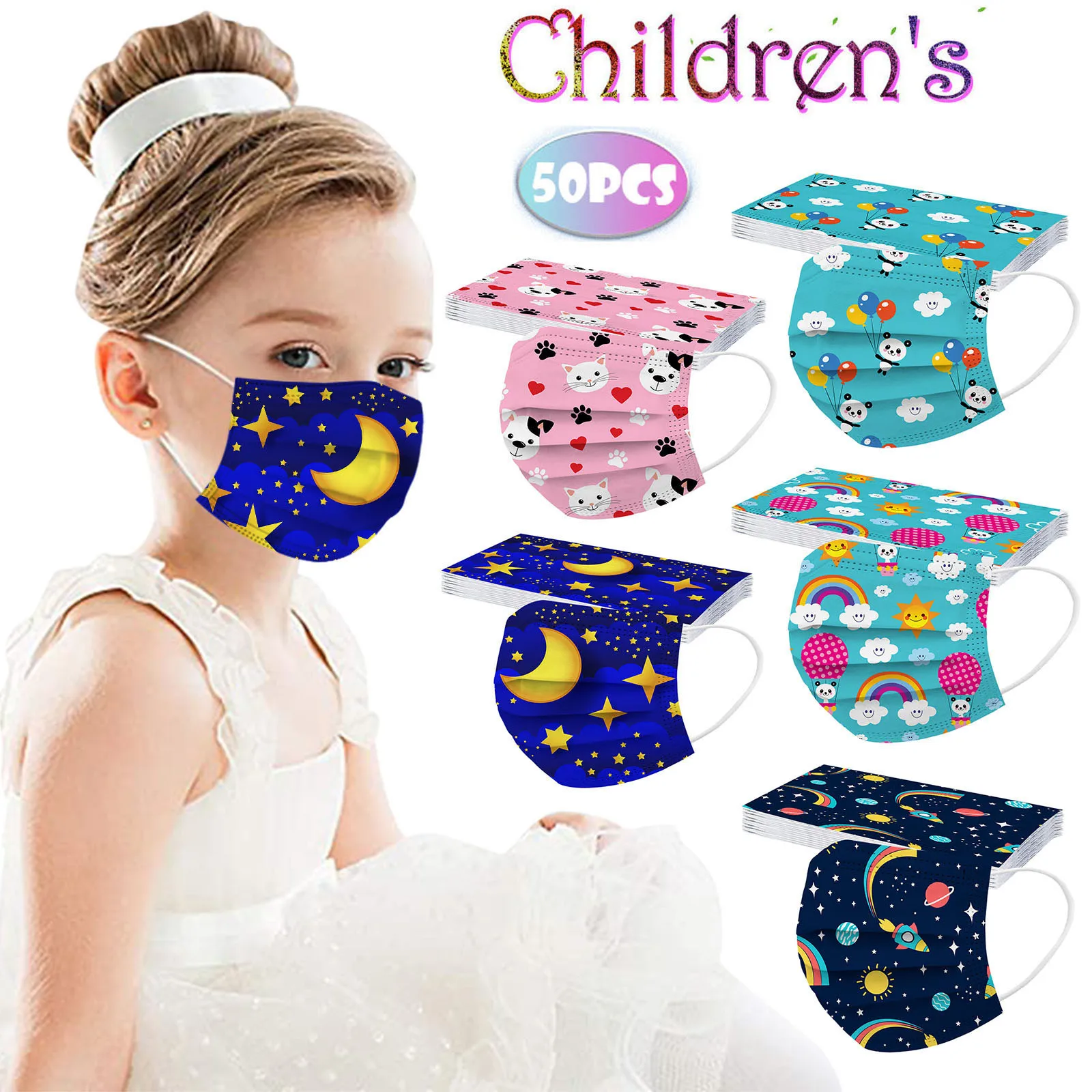 50 шт., детская трехслойная маска для лица, из нетканого материала