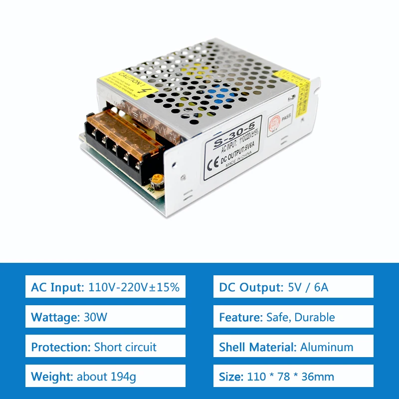 Светодиодный источник питания переменного тока, 5 в постоянного тока, трансформатор для светильник, 6 А переменного тока, 220 В, адаптер переключателя питания, подходит светодиодный светодиодной панели, ПК, камеры видеонаблюдения