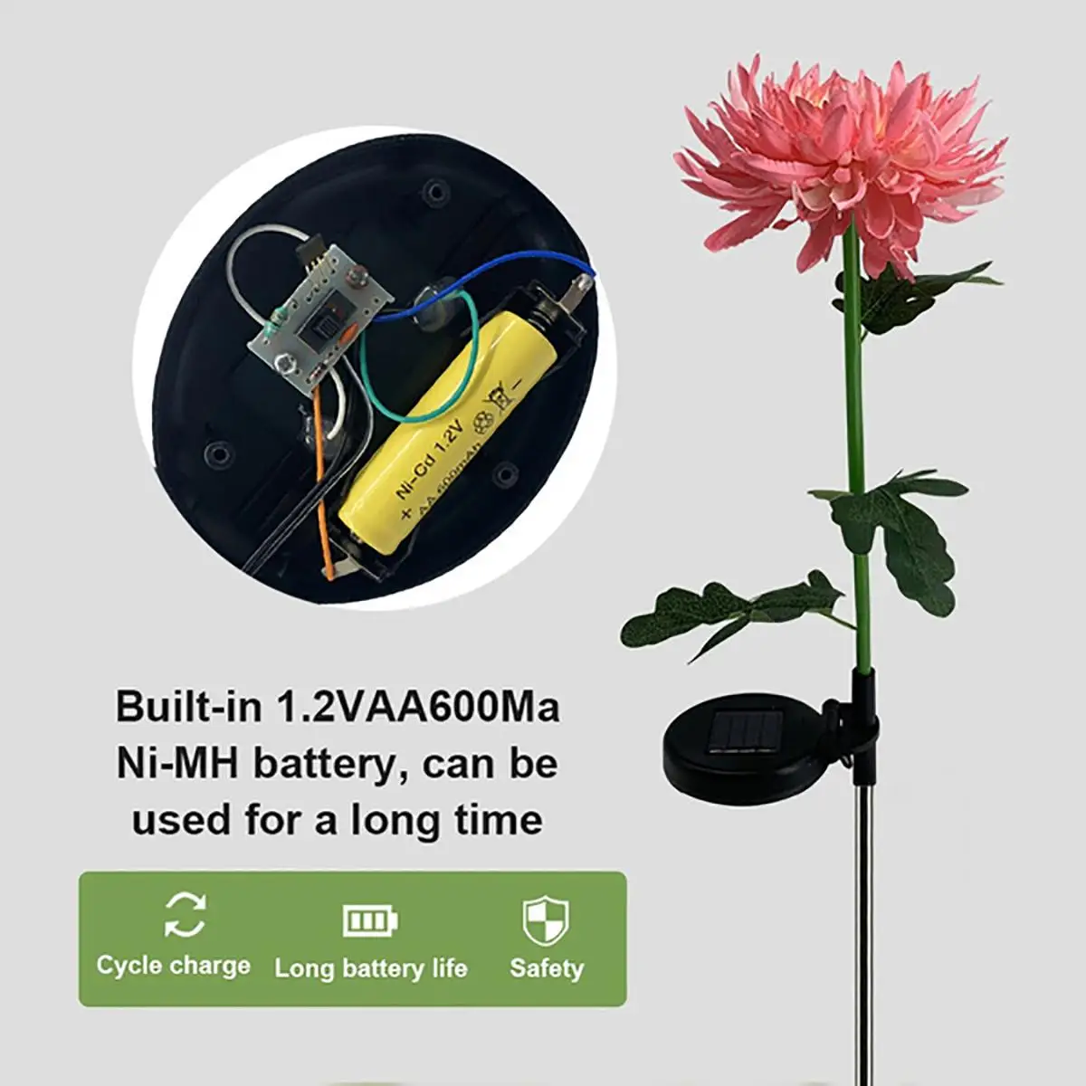 Спецификация: Цвет изделия: розовый, белый, желтыйПанель солнечных батарей: 2V 70MA эпоксидная доскаБатарея Тип: 1,2 V 600mA никель-металл-гидридного БатареяСветильник: белый светильникМатериал изделия: ПВХ + нержавеющая сталь + шелкВремя зарядки: 6-8 часов при прямых солнечных лучахВодонепроницаемость: IP65Применимые сцены: украшение садаРазмер: 80 см/31,5 дюйма