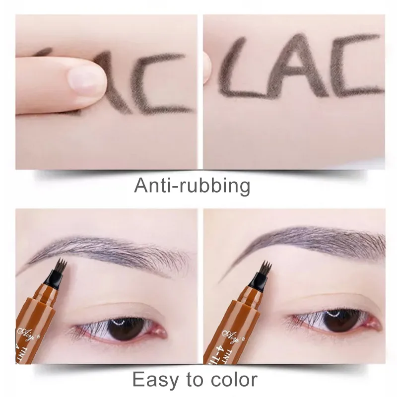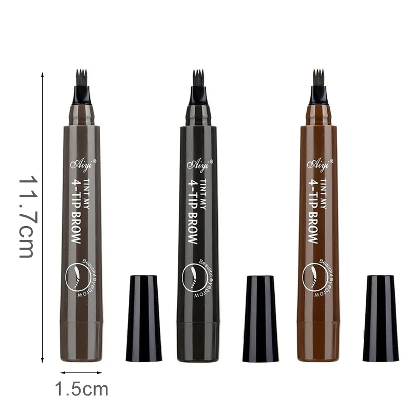 Жидкий карандаш для бровей, водонепроницаемый карандаш для бровей, 4 вилки, кончик, тонкий эскиз, цветная ручка для татуажа бровей, жидкая водная ручка для бровей