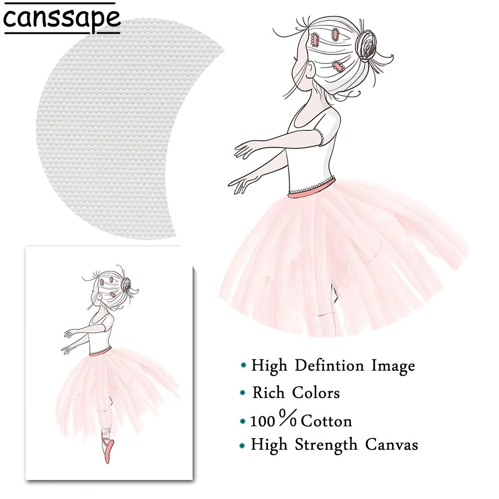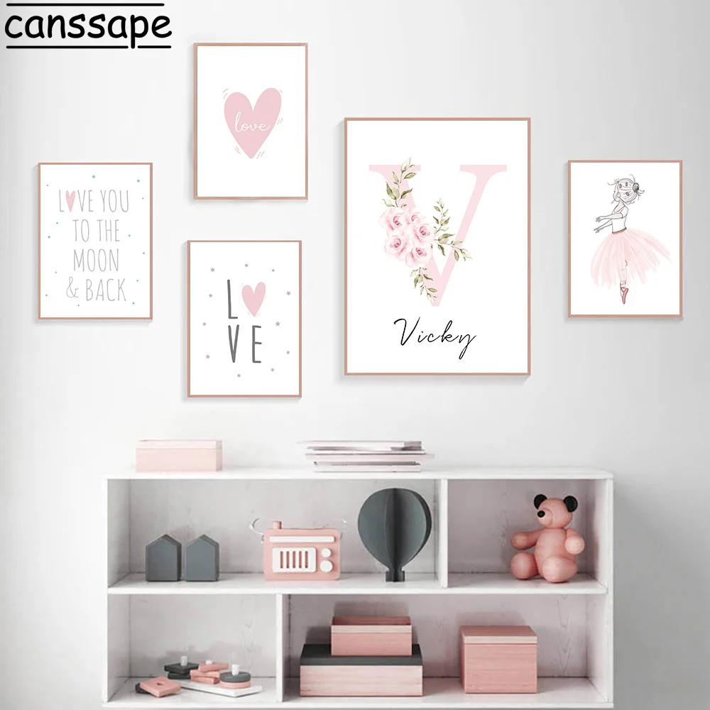 Мультяшная балерина, Картина на холсте, постер с именем на заказ, цветок, любовь, настенные художественные плакаты, Детская Скандинавская картина, декор комнаты для маленьких девочек