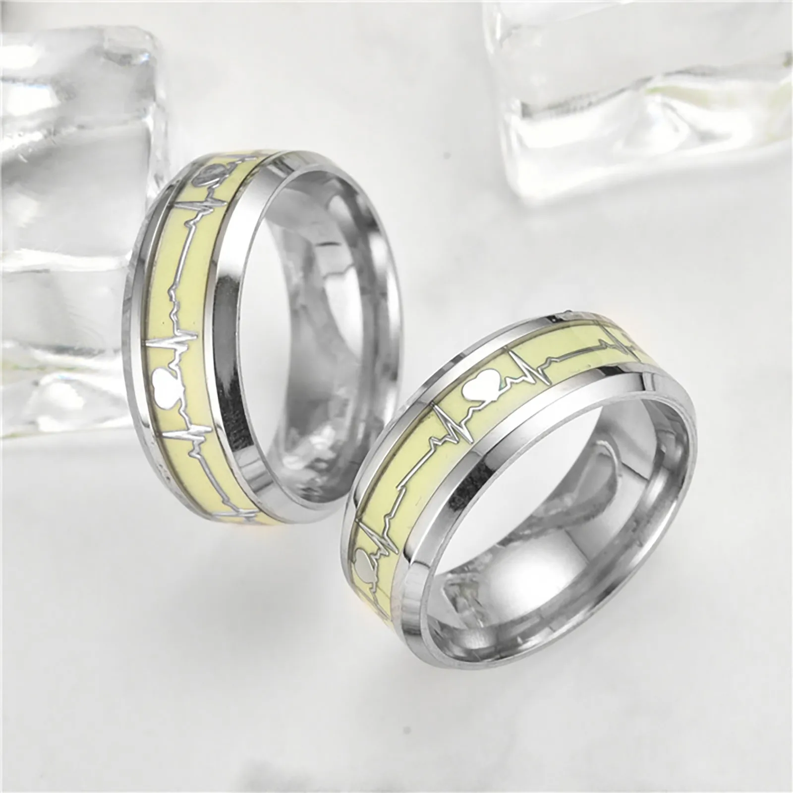 Кольца для влюбленных, из нержавеющей стали, флуоресцентные, с ЭКГ