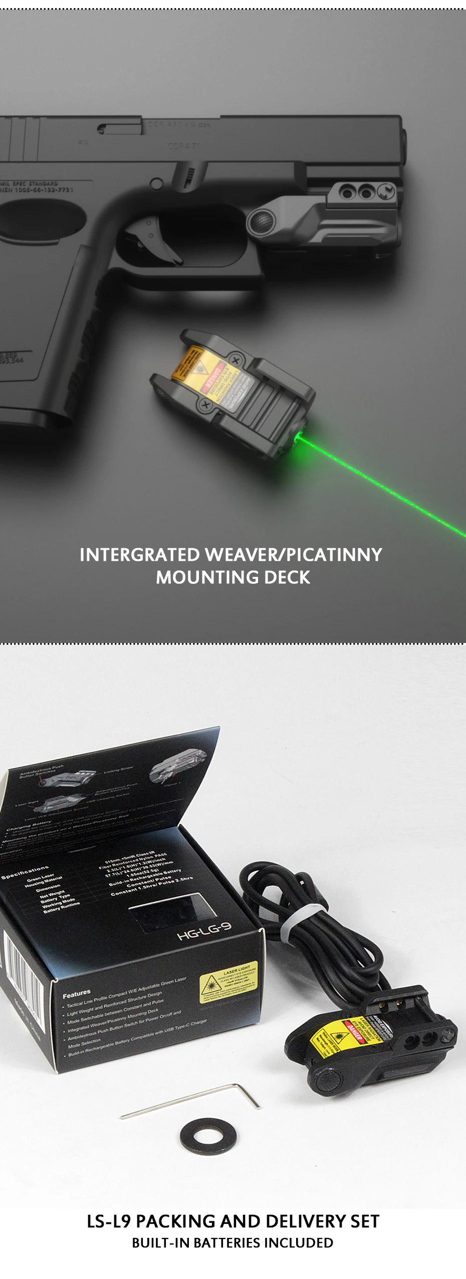 Прямая поставка, заряжаемый через USB, компактный лазерный прицел с зеленой точкой для пистолета Glock, Спрингфилд, лазерный прицел
