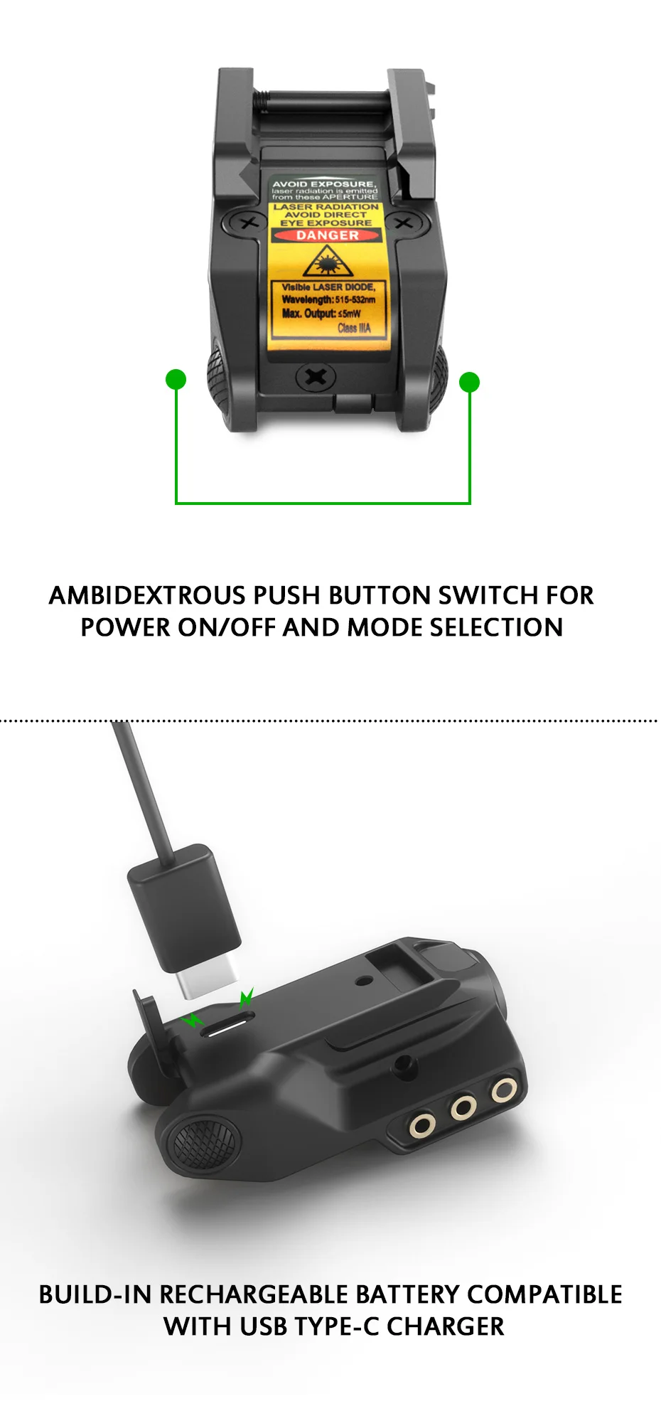 Низкопрофильный зеленый лазерный прицел со встроенной перезаряжаемо...