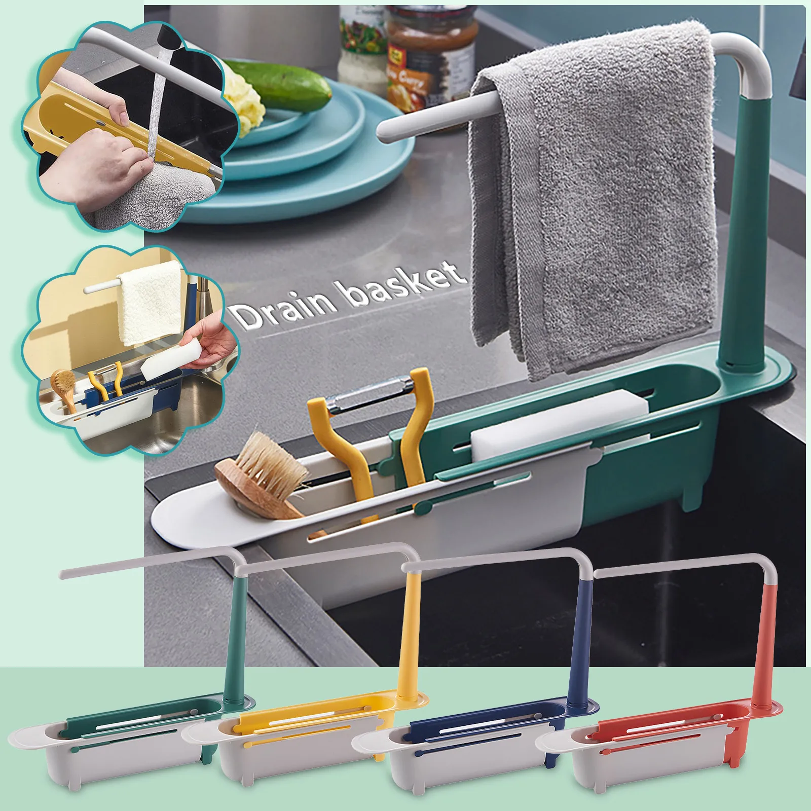 Телескопическая полка для раковины, органайзер, держатель губки для мыла, полотенец, сушилка, корзина для хранения, регулируемая полка, стеллаж для хранения, кухонные приспособления