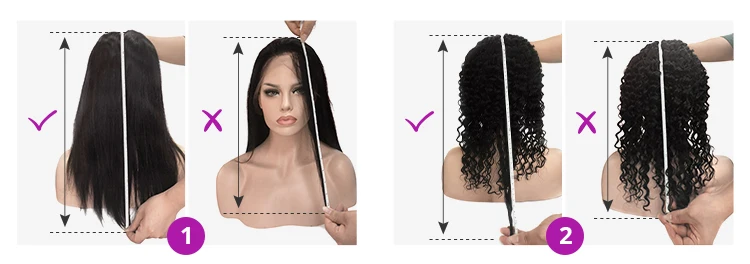 1/длина прямых волос парика должна быть измерена длиной от вращения головы до самых длинных волос в нижней части2/длина Волнистых Волос Парика должна быть растянута, чтобы прямой, чтобы измерить длину.