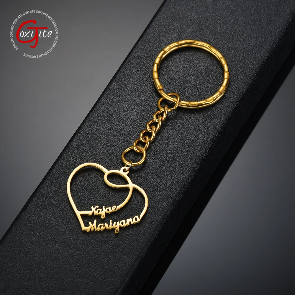 Брелок Goxijite из нержавеющей стали под заказ с 2 названиями, любовь, креативная Персонализированная табличка с именем, женская, Детская бижутерия, подарок на день рождения