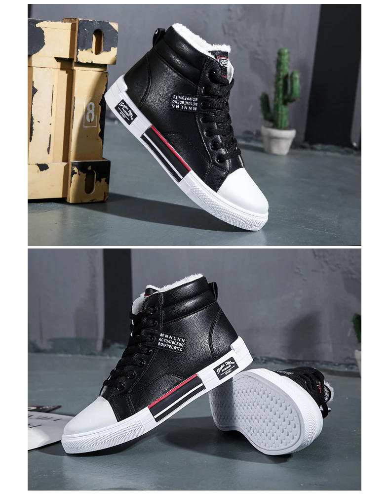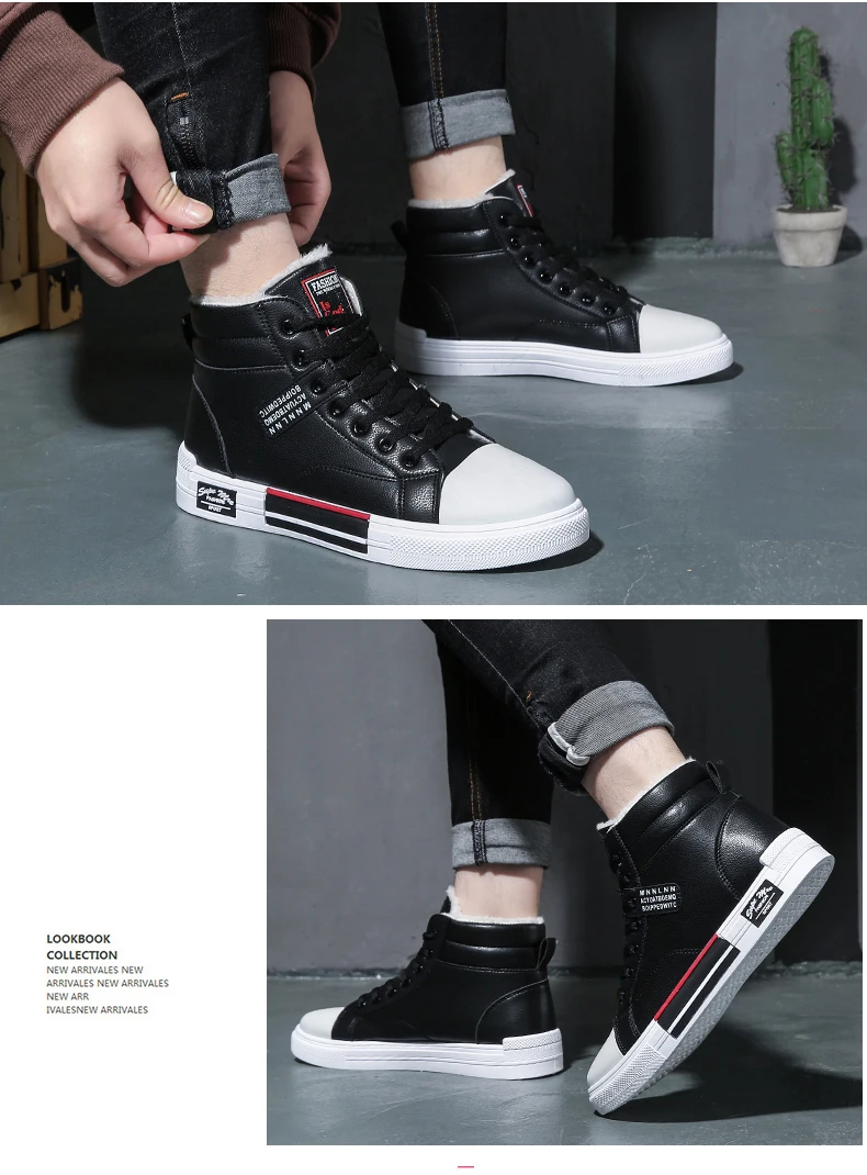Уличные классные мужские высокие кроссовки для мальчиков на плоской платформе Ботильоны 2021 модная мужская кожаная вулканская обувь черные белые меховые ботинки
