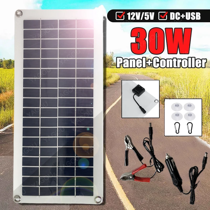 Солнечная панель 30 вт полный комплект 12 в USB портативная уличная поликремниевая солнечная батарея для кемпинга туризма путешествий зарядное устройство для телефона