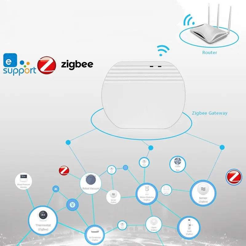 Решение Zigbee будет более стабильным, чем решение WiFi, и может подключаться ко многим устройствам smart home.