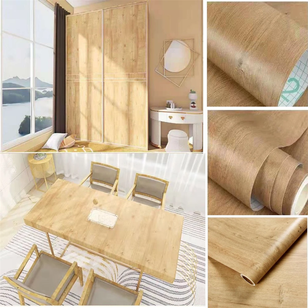 ПВХ-наклейки под дерево для шкафа буфет, стол мебель, водонепроницаемые самоклеящиеся съемные обои, пленка для домашнего декора