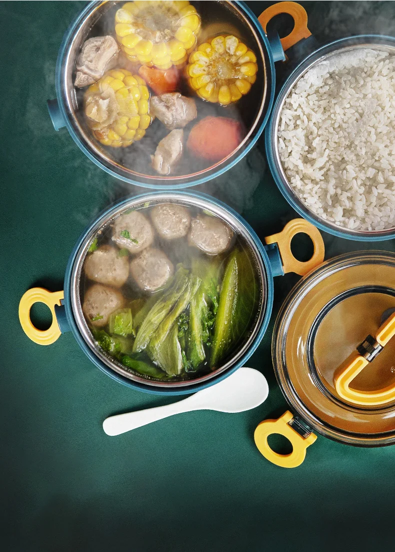 Портативный изолированный пластиковый семейный контейнер из нержавеющей стали