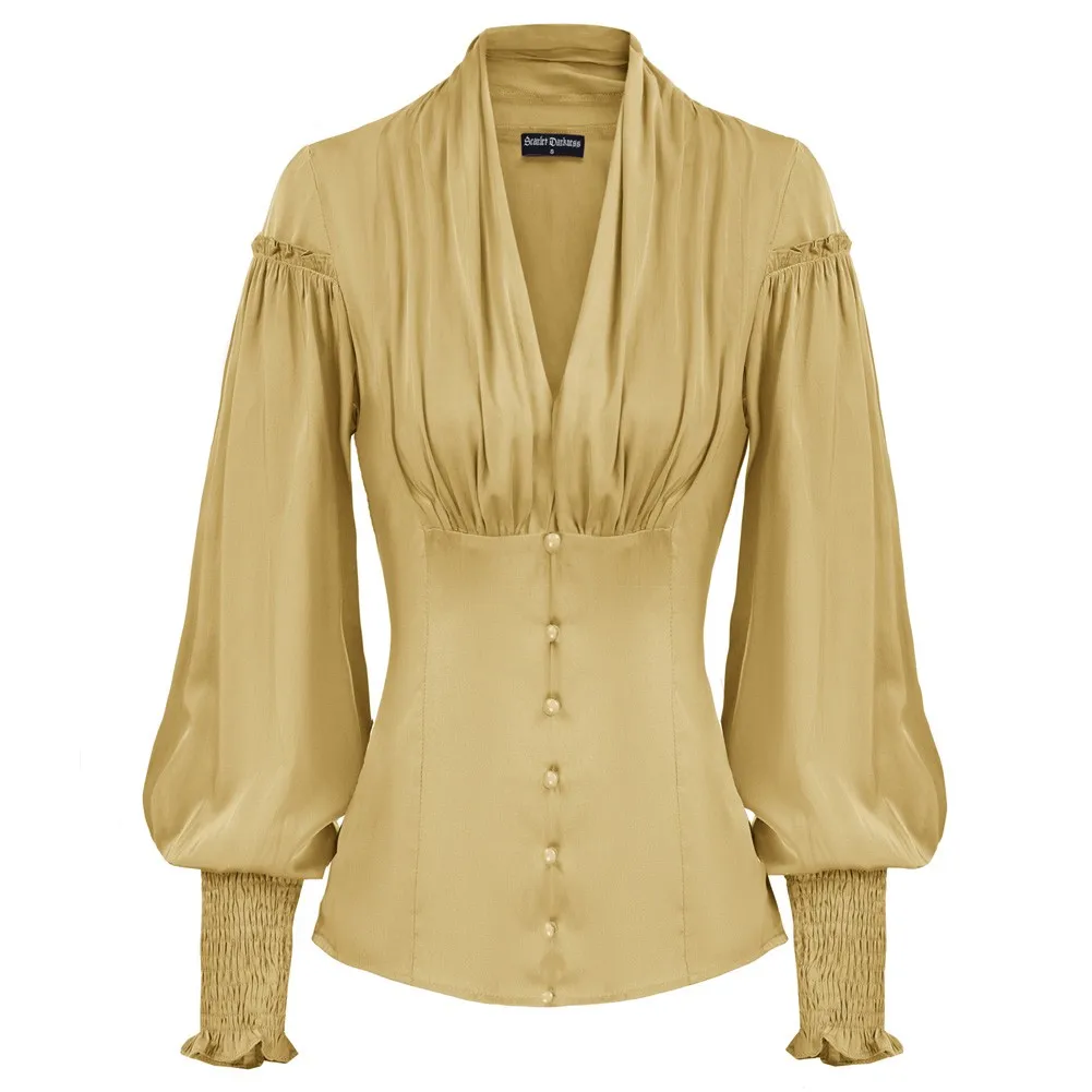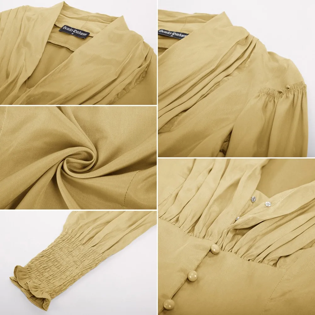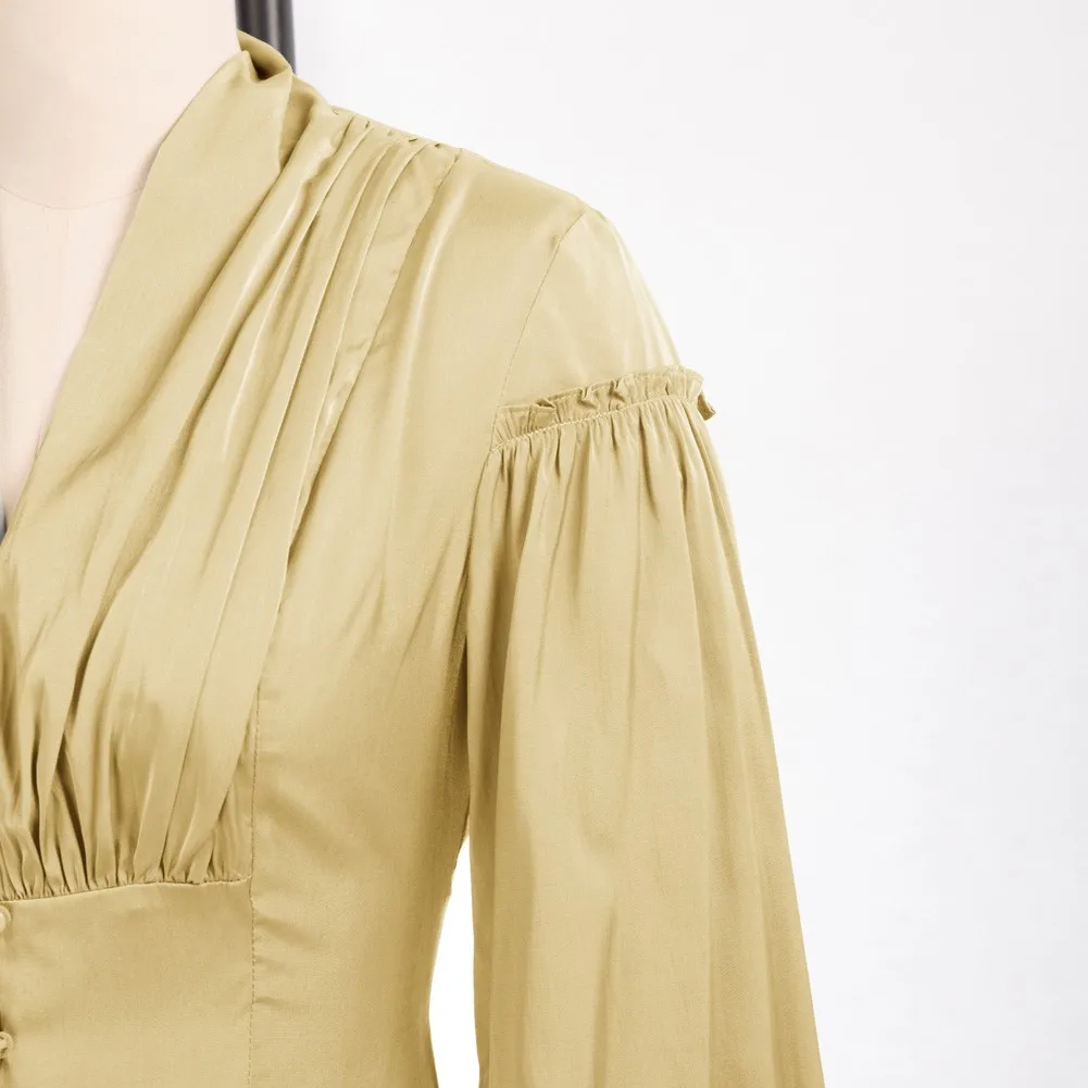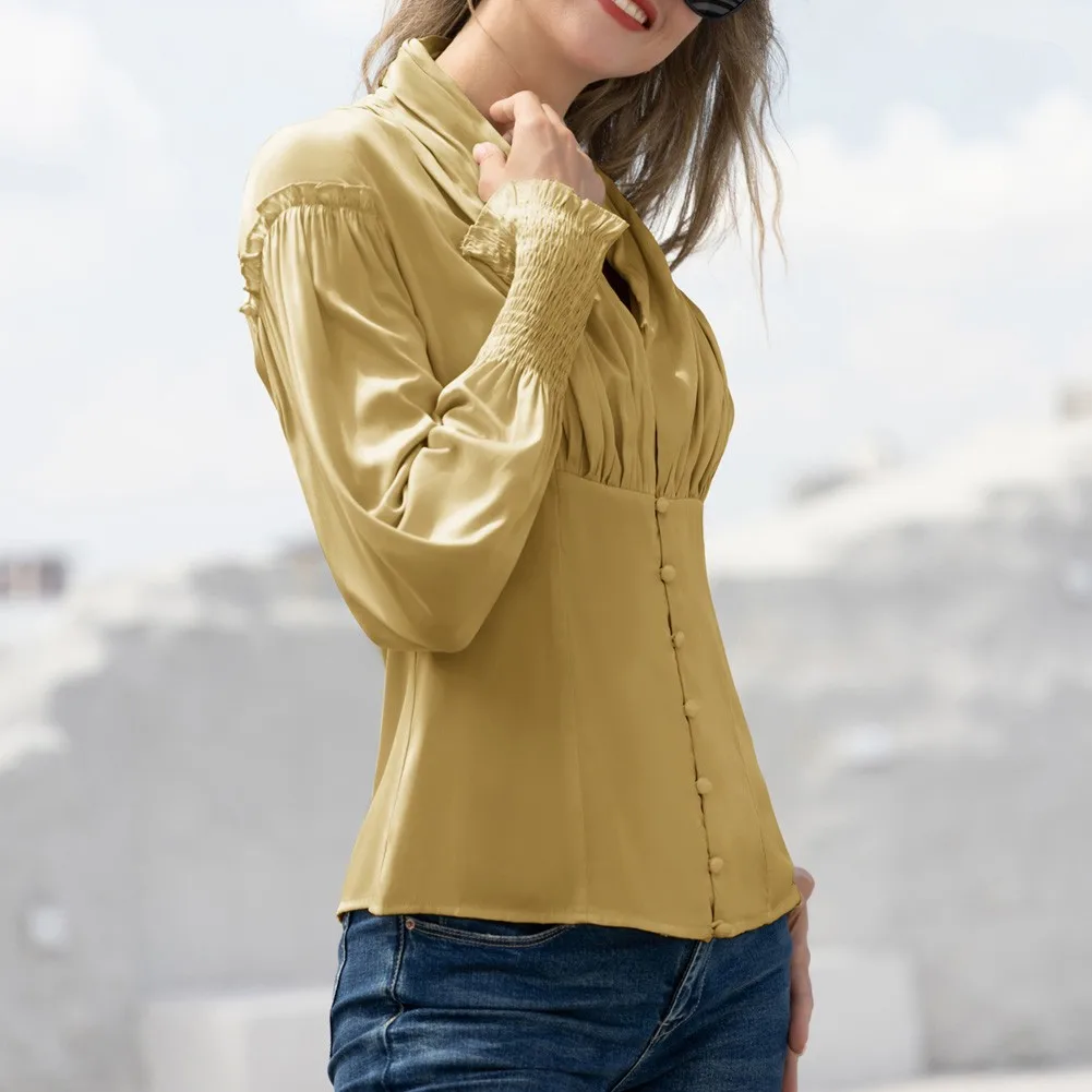 Женская рубашка с рюшами, длинными рукавами-фонариками и V-образным вырезом