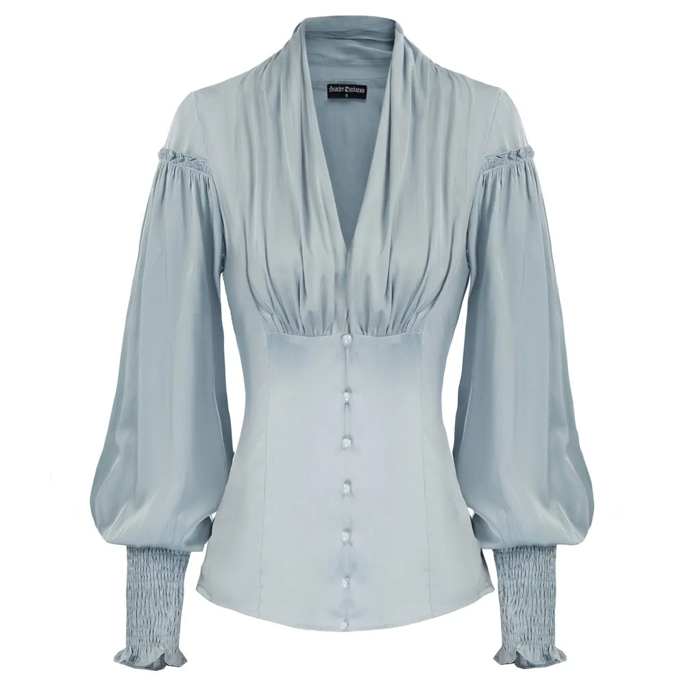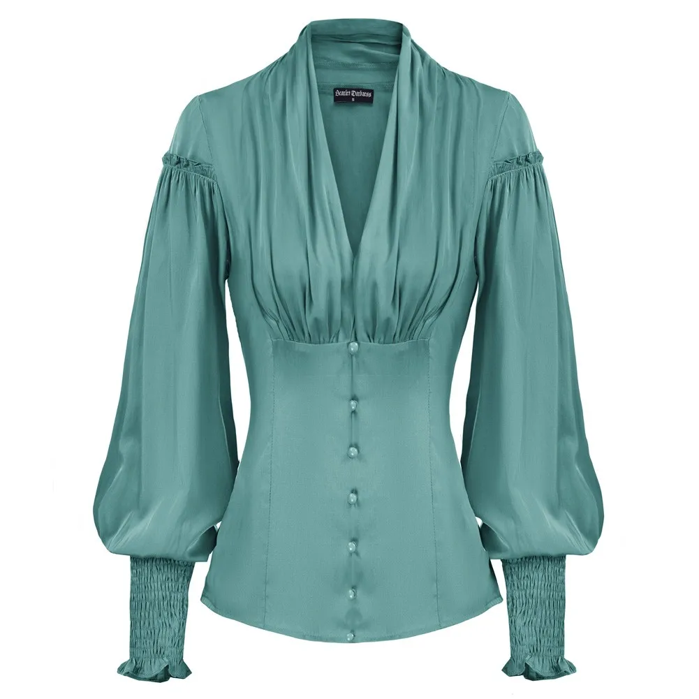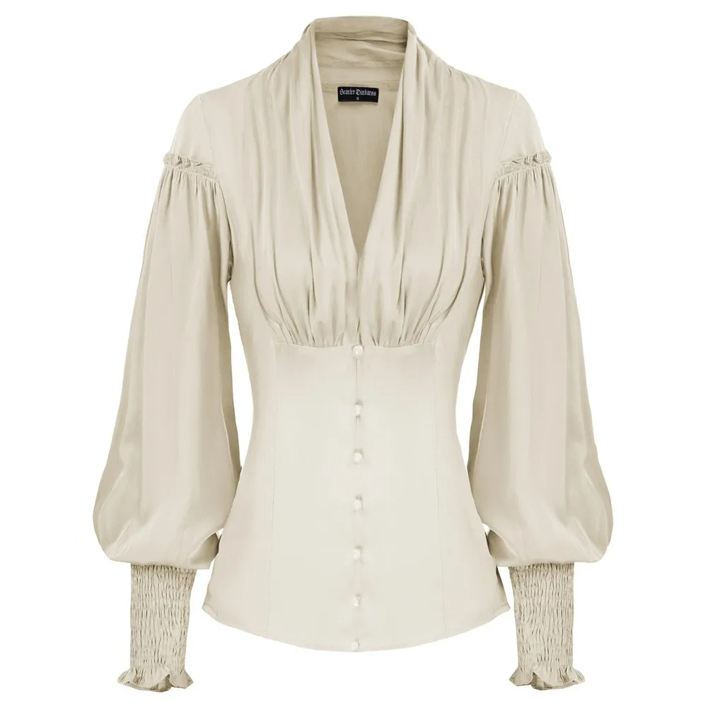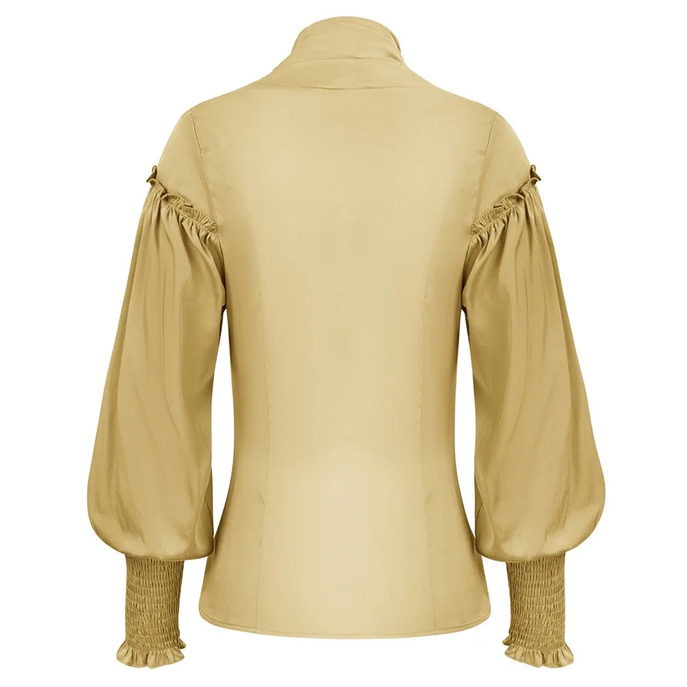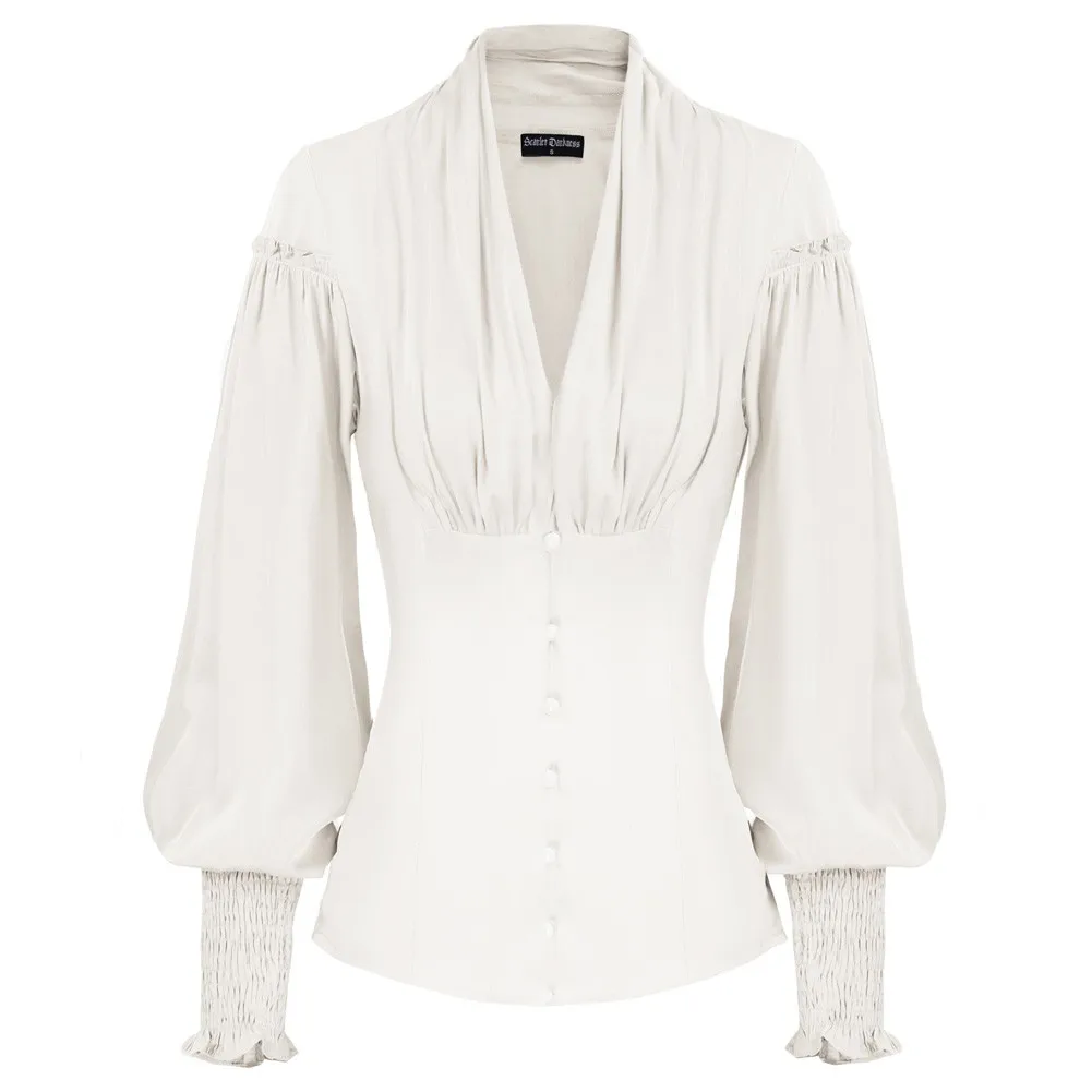 Женская рубашка с рюшами, длинными рукавами-фонариками и V-образным вырезом
