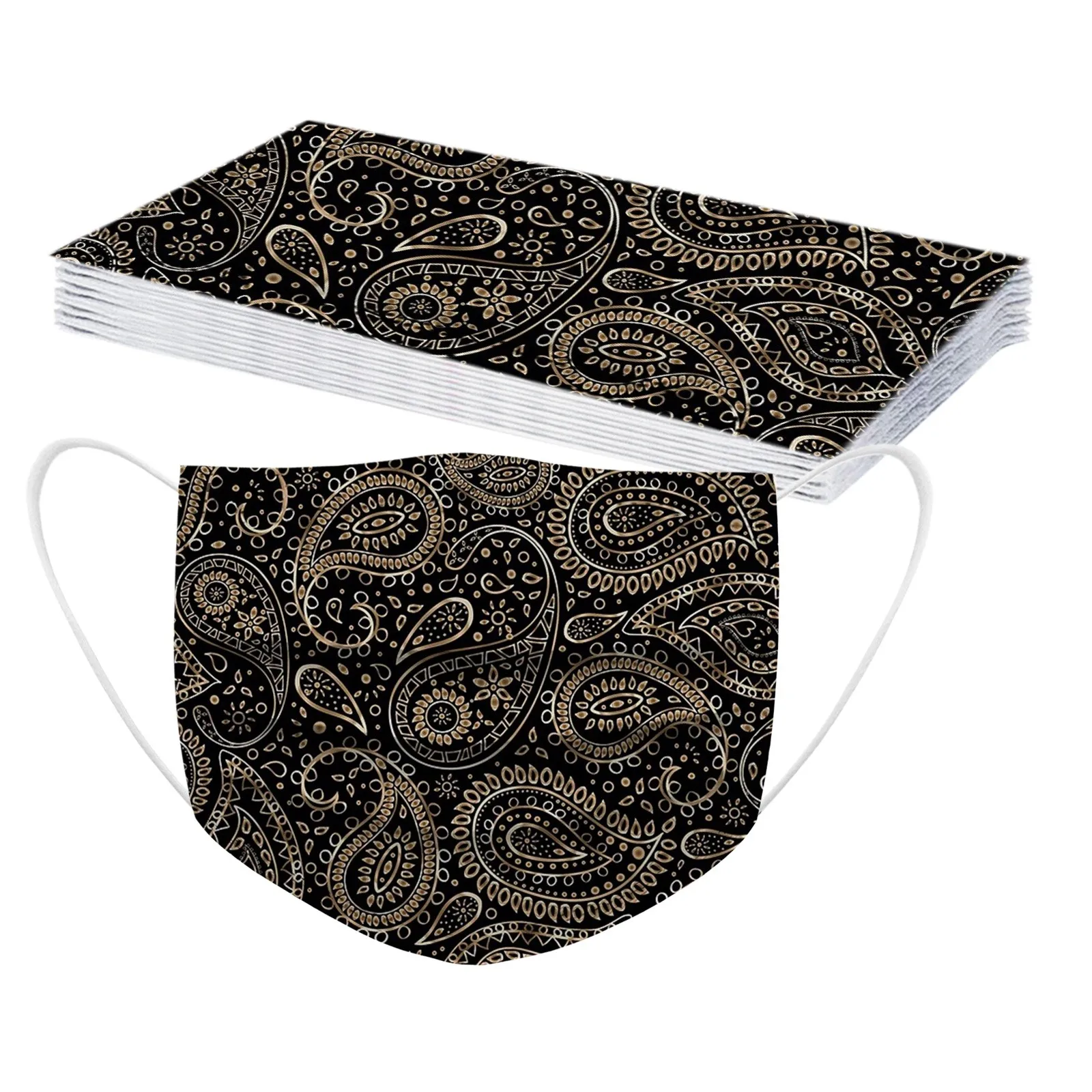 50 шт. маска для взрослых с пейсли-принтом одноразовая маска для лица маска промышленная трехслойная маска с петлями для ушей маска маски женские маски