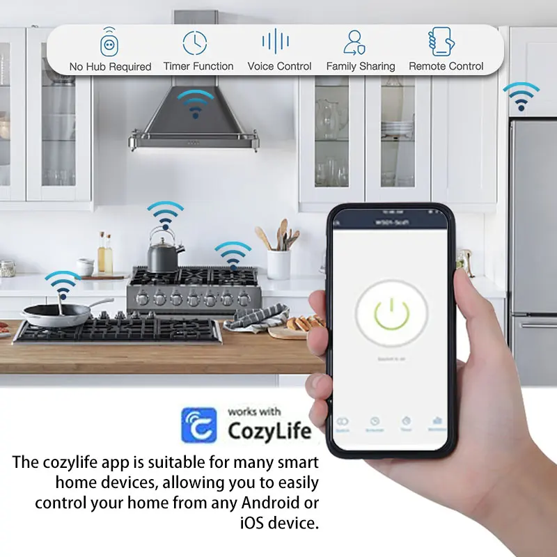 Приложение cozylife подходит для многих устройств smart home, что позволяет легко управлять своим домом с любого устройства Android или iOS. Материал корпуса изготовлен из огнестойкого материала ABS PC.