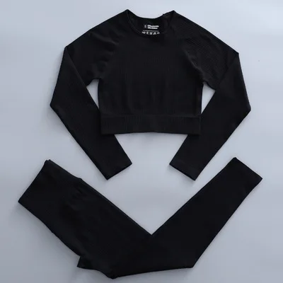 Бесшовная рубашка с длинным рукавом, короткий топ, леггинсы, комплект для йоги, обтягивающие спортивные шорты для фитнеса и бедер, быстросохнущие, женская одежда