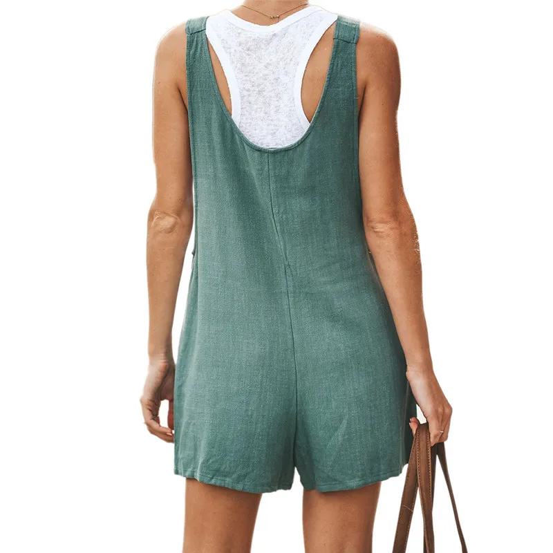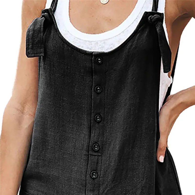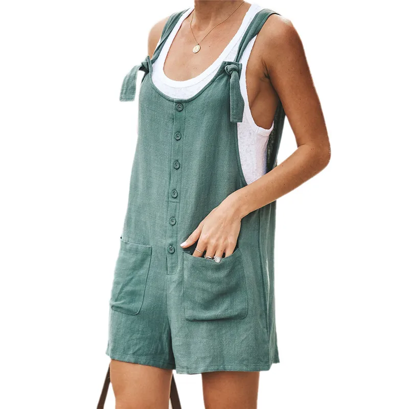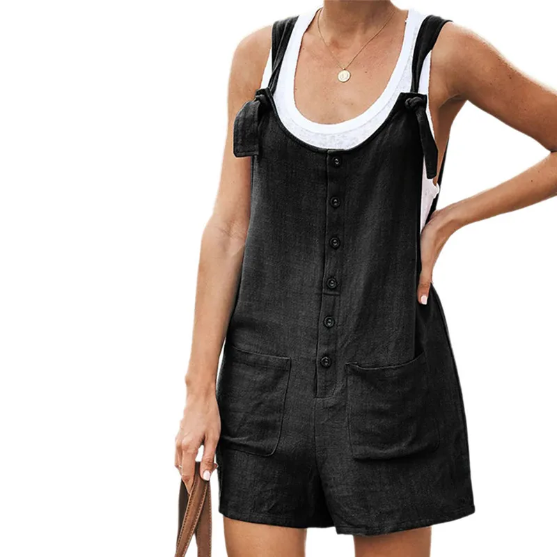 Женский комбинезон, повседневный простой стиль, однотонный Свободный комбинезон без рукавов, на бретельках, с открытой спиной, летний женский комбинезон
