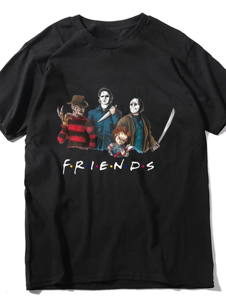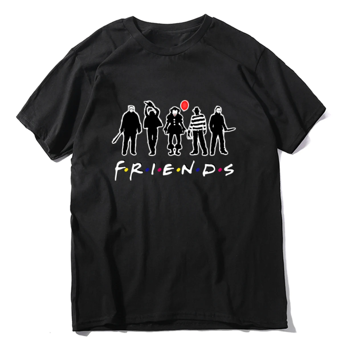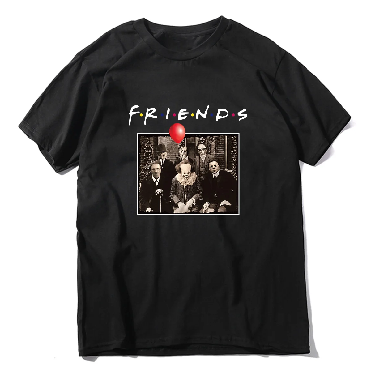 Лучшая хлопковая Футболка с принтом ужасов, друзей, пеннивайз, Майкла Майерса Джейсона вурхеса, Хэллоуин, мужские хлопковые футболки для мужчин и женщин, горячая распродажа
