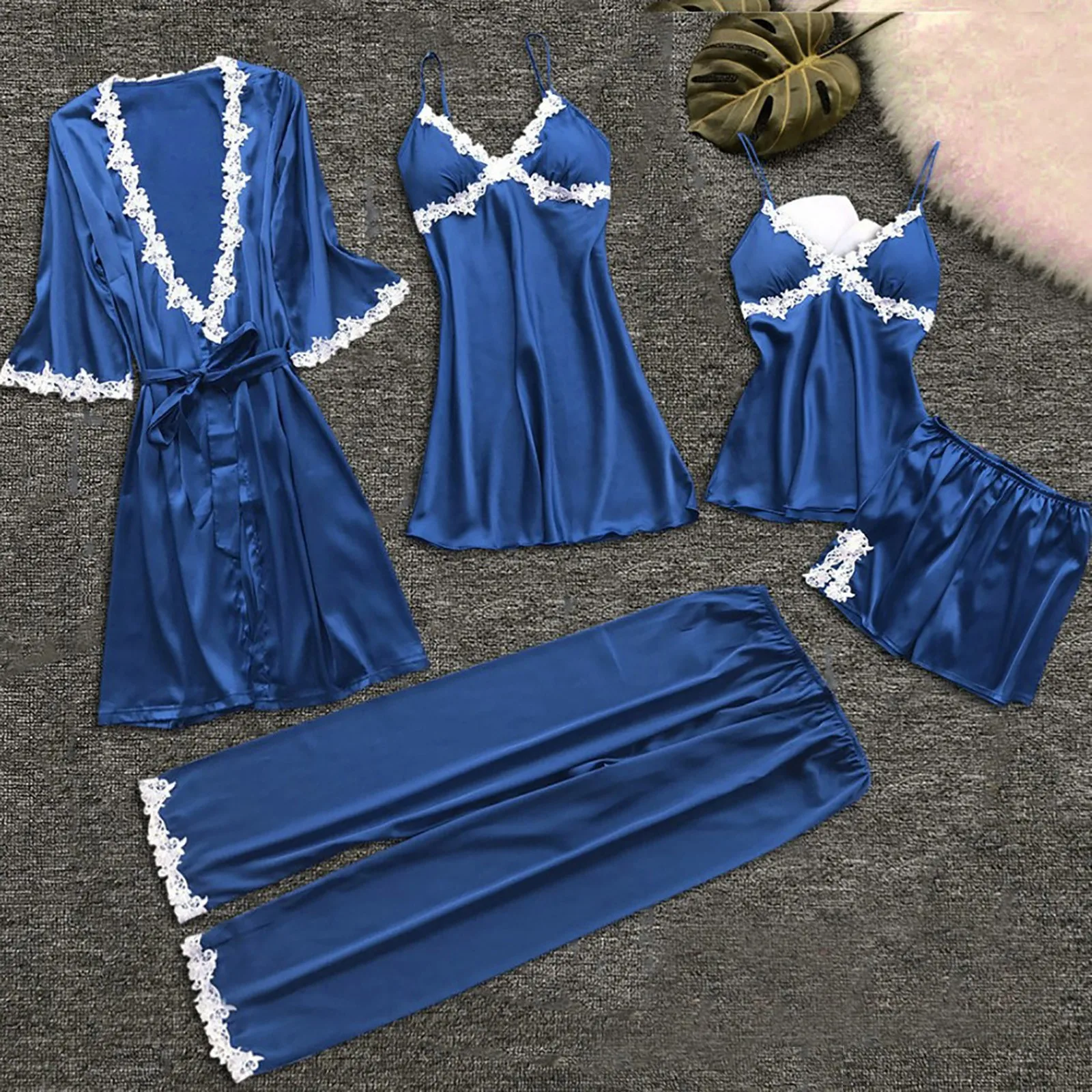 Пижамный комплект Женский с подвязками и глубоким v-образным вырезом, 5 шт.