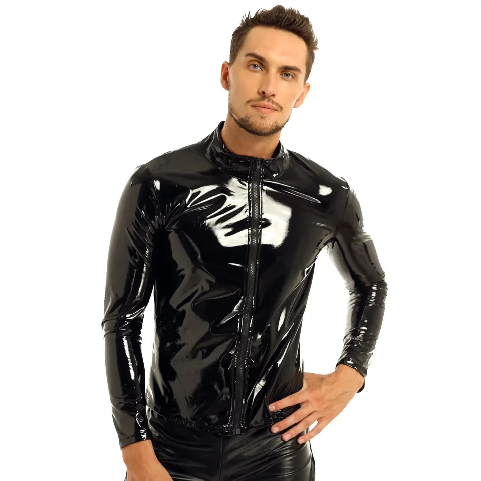 Женская сексуальная блестящая кожаная рубашка, Эротическая формирующая рубашка, повседневное пальто, Мужская Глянцевая кожаная куртка из ПВХ, сексуальные топы