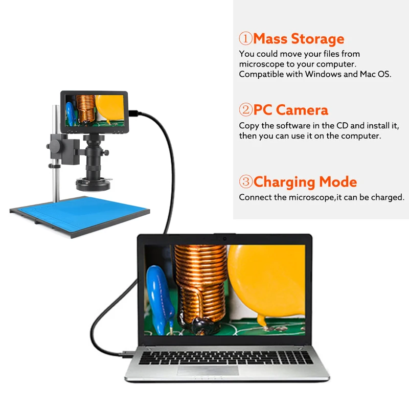 HD 1080P видео микроскоп с 7-дюймовым ЖК-монитором 130X объектив Электронный USB цифровой микроскоп камера для фотографий