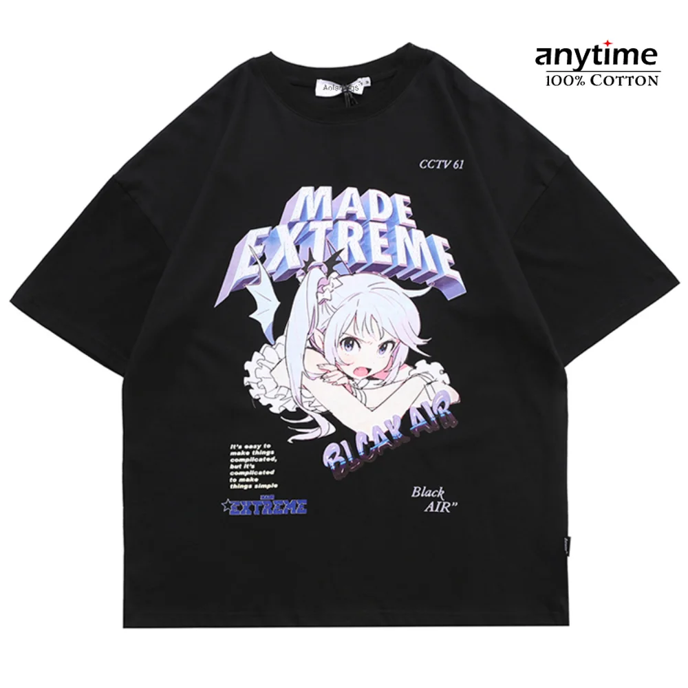 Футболка мужская оверсайз из 100% хлопка с принтом манги и девушки ...