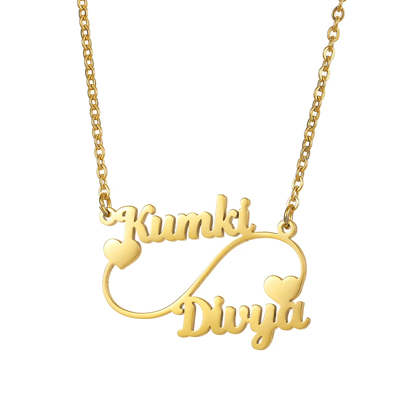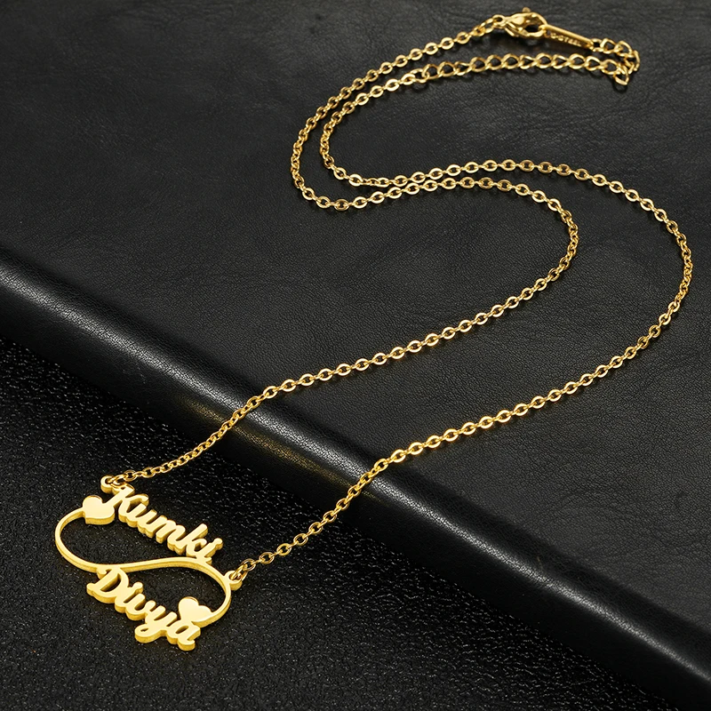 Индивидуальные ожерелья с именем бесконечности с 2 именами для пары, Женская цепочка из нержавеющей стали с кулоном бесконечностью, Ожерелье Дружбы семьи