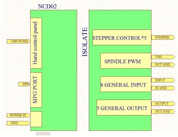 Решение источника питания в области промышленной автоматизации всегда оченьСложный, есть много GND, теперь мы описываем структуру источника питания, какНиже:Структура источника питания как на рис. 2-1, основной источник питания и модуль MPG иВыходной модуль Шагового управления является общим GND, ограниченным и Estop входным модулем и шпинделемМодуль регулировки скорости является общим GND, между основным источником питания и выходным модулем естьФотоэлектрическая изоляция. Входы ограниченного переключателя и Estop и так далее являются обычным катодом,Внутри устройства есть GND как обычный-нет необходимости подключать внешний источник питания. На основеДля справки о выходном интерфейсе GND, выходное Регулируемое напряжение 0-10 В для регулировки шпинделяСкорость. Шасси построено с 220 В до 48 В постоянного тока питания к бесщеточному шпинделю постоянного тока и 4 шагаДрайвер двигателя.
