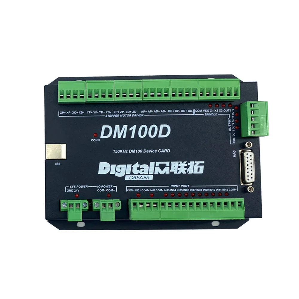 Прочитайте G-CODE U-DISK;Безопасная Работа без компьютера; 8 портов фотоэлектрический изолированные входной интерфейс; 5 портов фотоэлектрический изолированный выход интерфейс;1 порт 0-10 В Скорость вращения шпинделя аналоговый выходной интерфейс (можно изменить на выход ШИМ); Может поддерживать 5 осевые шаговые системы, 125 кГц импульсный выход для каждой оси;Микросхема управления движением руки; Основным устройством является 24VDC источник питания, ток должен быть выше 1AПоддержка стандартных MPG и NVMPG; 3,5 ''TFT экран;Клавиша 19 пользователей;