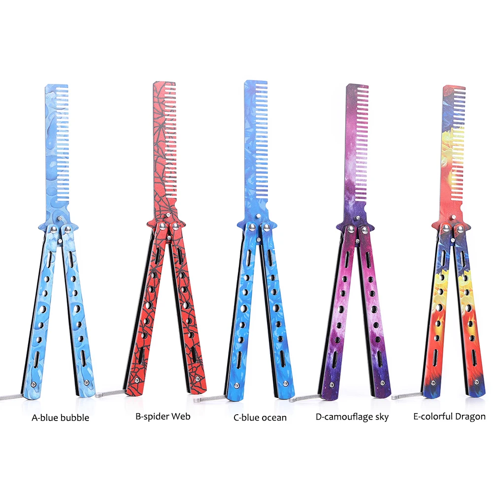 Складная расческа для волос нож-бабочка расческа из нержавеющей стали тренировочная расческа Парикмахерские аксессуары для волос для любителей ножа-бабочки