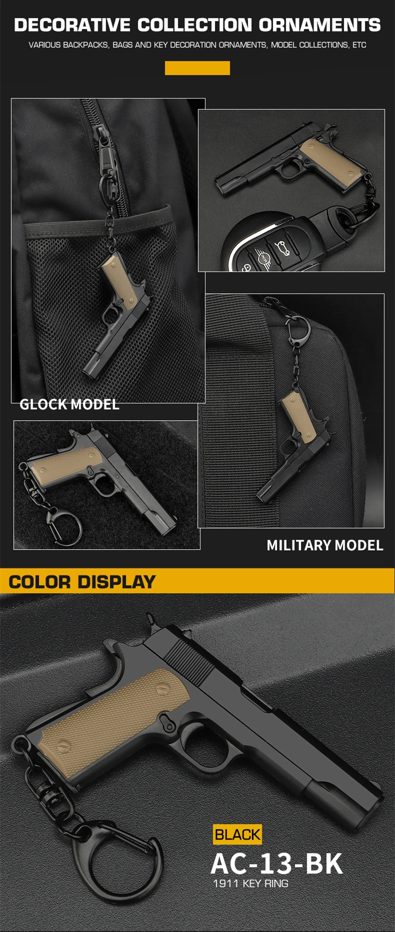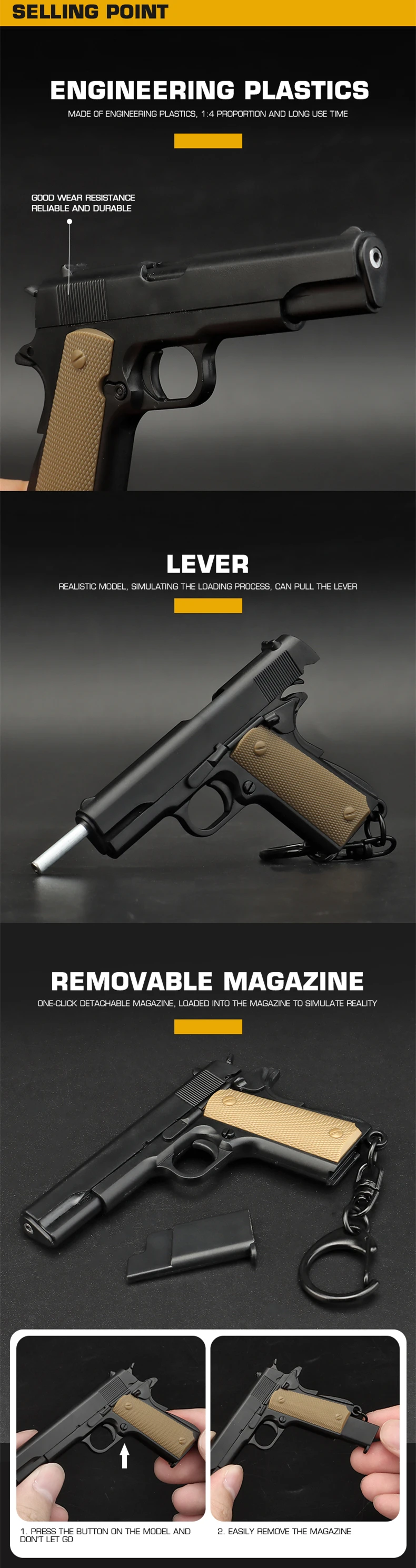 Модель 1911, кольца для ключей 1:4, тактический декоративный подарок, пластиковый брелок для ключей с подвижным рычагом и магазином