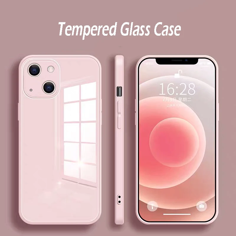 Квадратный закаленный бампер, чехол для телефона iPhone 13 Mini 12 ...