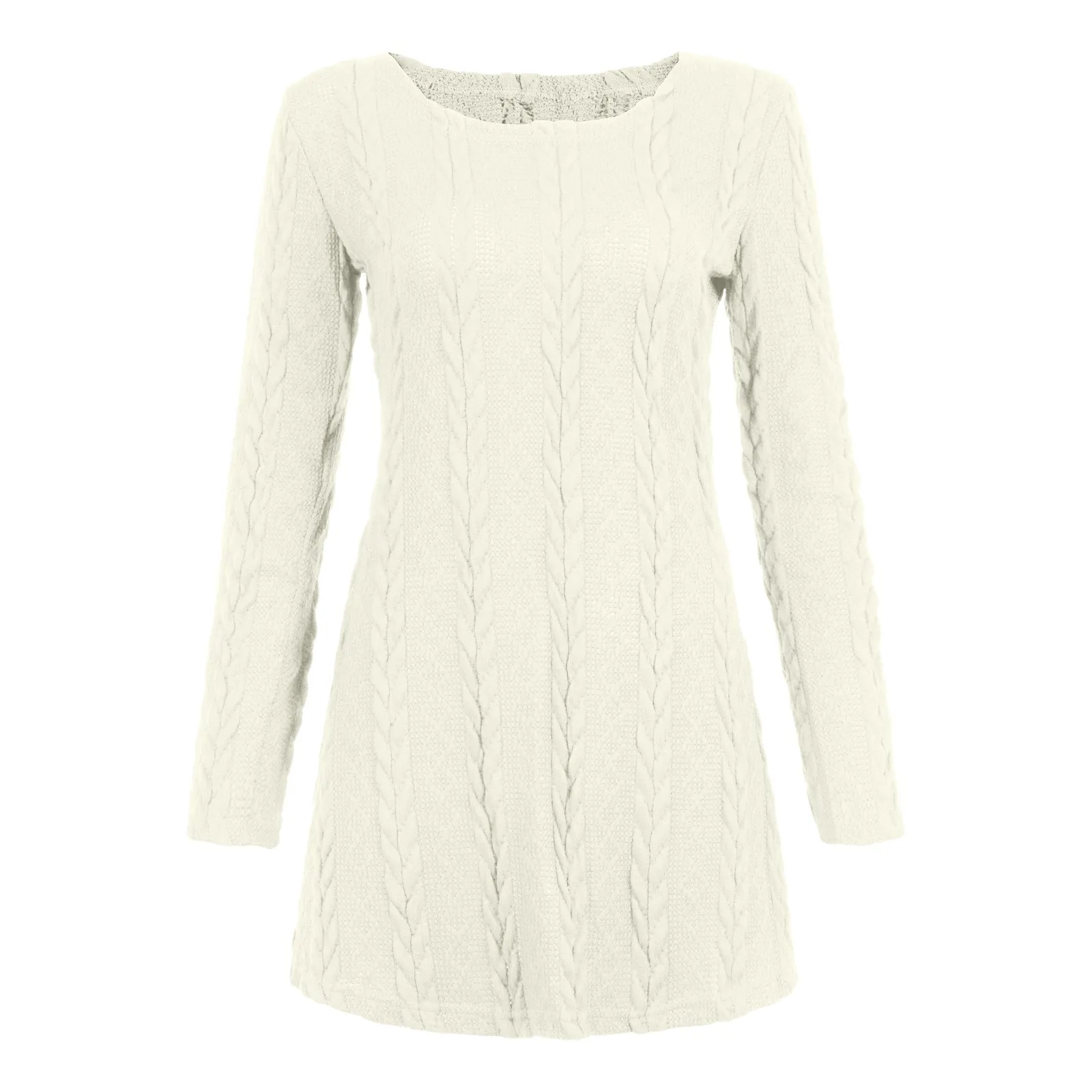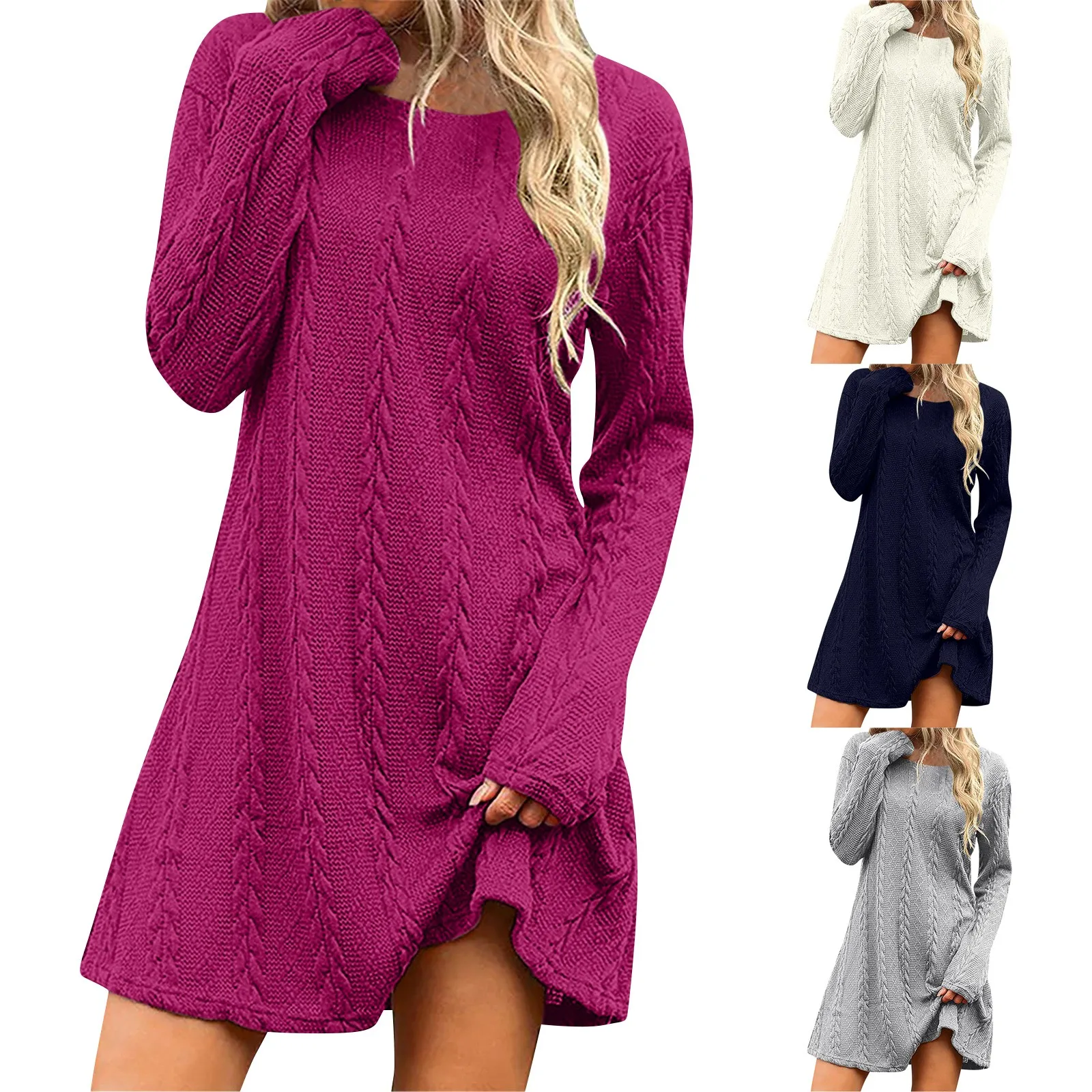 2021 Женское модное вязаное Платье-свитер с круглым вырезом и длинным рукавом, Женское зимнее Новое теплое однотонное Платье, Женское Платье 2022