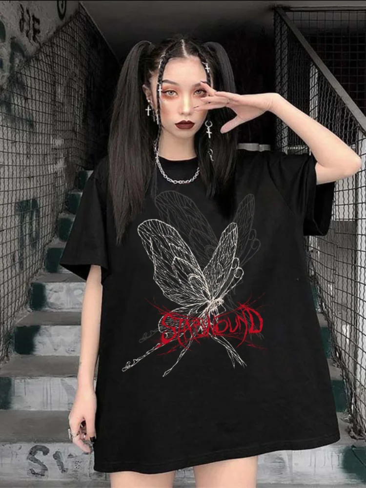Футболка женская хлопковая оверсайз с принтом, в стиле гранж и Готика