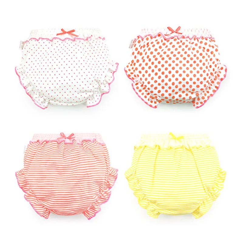 3 шт.лот, детские трусики из 100% хлопка модные однотонные трусы в полоску и Горох с бантом для новорожденных девочек